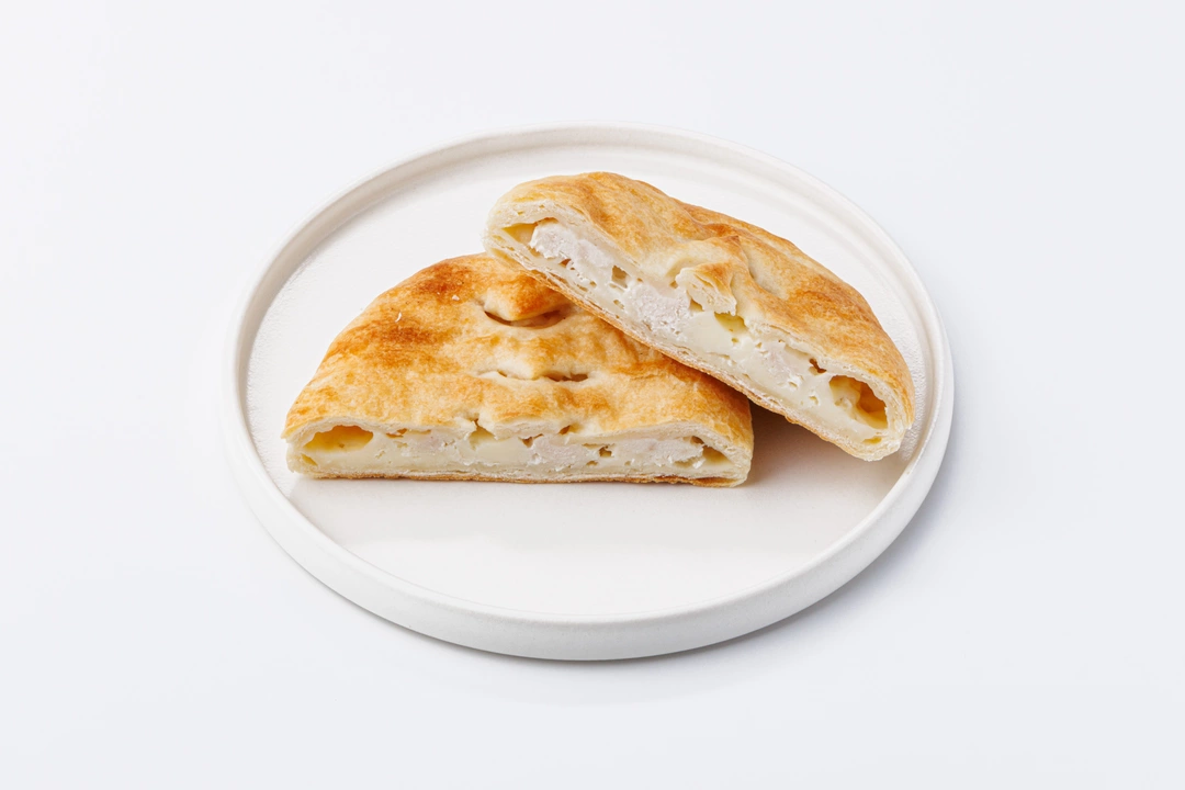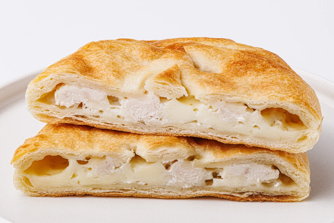 Небольшой пирог из слоёного теста с начинкой из нежной куриной грудки и осетинского сыра. Рекомендуем предварительно разогреть блюдо в микроволновой печи: сыр внутри расплавится, а мясо станет сочнее. Этот сытный пирог хорош на завтрак или на обед, когда нет времени на долгую готовку.