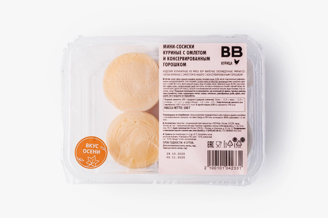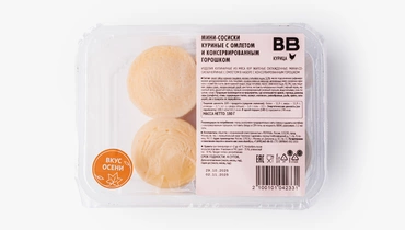 Мини-сосиски куриные с омлетом и консервированным горошком