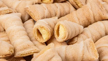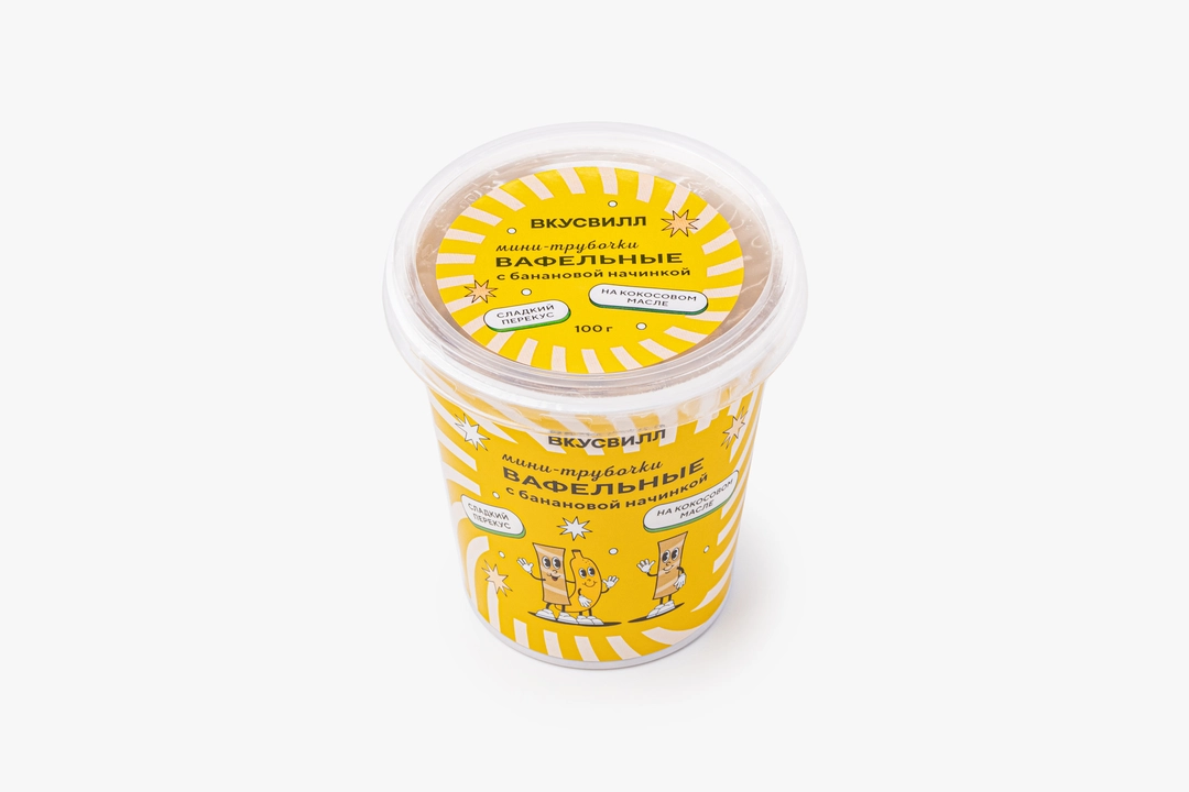 Хрустящие вафельные трубочки с нежной банановой начинкой. Они приготовлены на кокосовом масле, придающем им тропический оттенок. Мы добавили в тесто молочную сыворотку, чтобы вкус получился особенно мягким. Тонкие вафли и лёгкий банановый крем понравятся любителям умеренно сладких десертов. Трубочки хорошо сочетаются с какао, молочными коктейлями и ароматным тёплым чаем. Благодаря удобной упаковке их можно взять с собой в качестве перекуса.