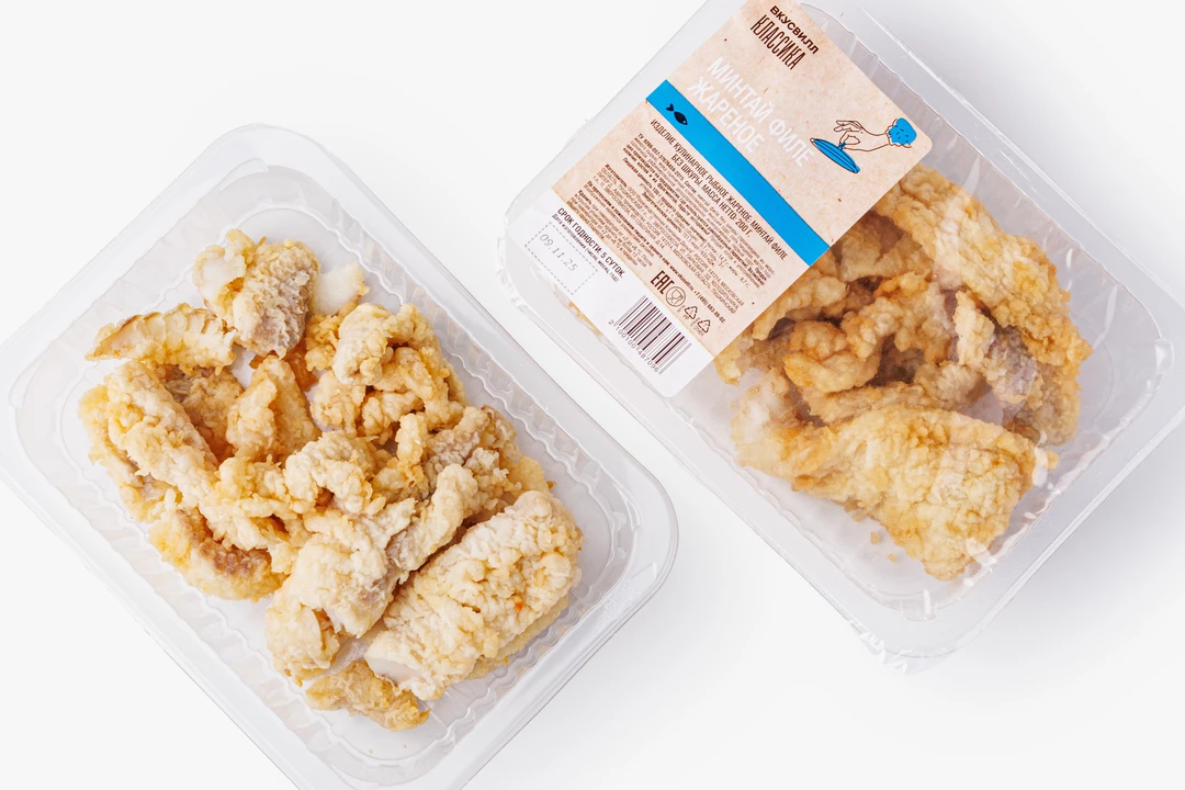 В жареном минтае от ВкусВилла нет вкусоароматических усилителей и консервантов. Мы используем рыбу, замороженную лишь раз — на судне после вылова.