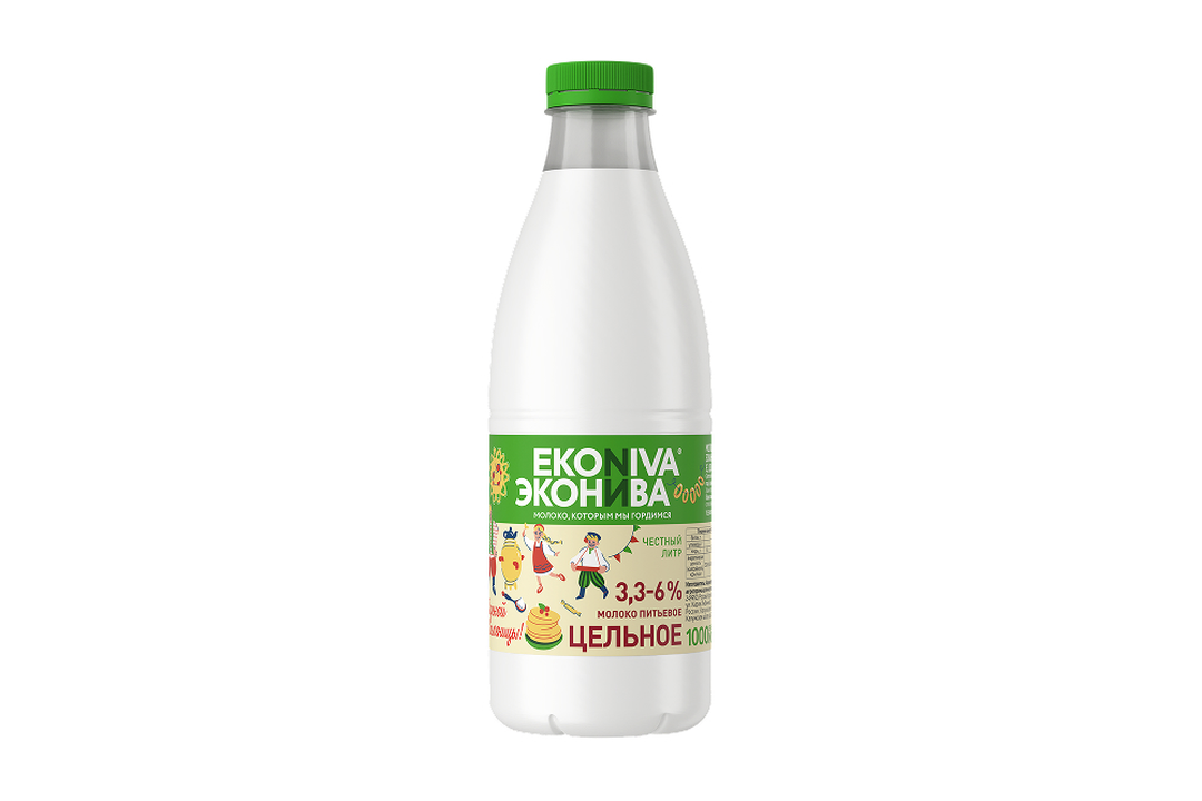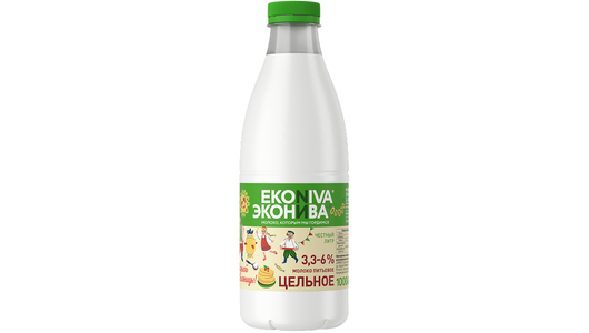 Молоко ЭкоНива пастеризованное цельное 3,3-6% 1 л