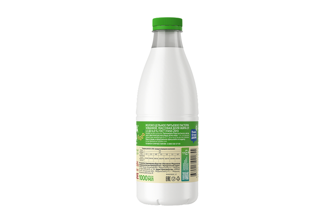 Пастеризованное цельное молоко «ЭкоНива» 3,3–6,0% изготавливается из натурального молока высшего сорта с собственных ферм. Оно содержит легкоусвояемый молочный белок, а также микроэлементы и витамины. Цельное молоко прекрасным образом подойдет для создания любимых блюд, маринадов, соусов и молочных коктейлей, а также придаст насыщенный молочный вкус кофе. Страна-производитель Россия