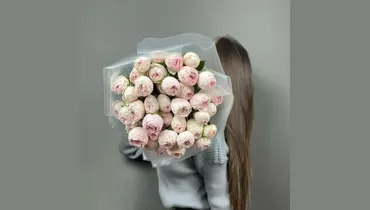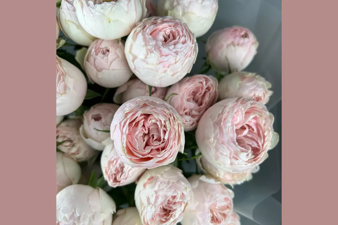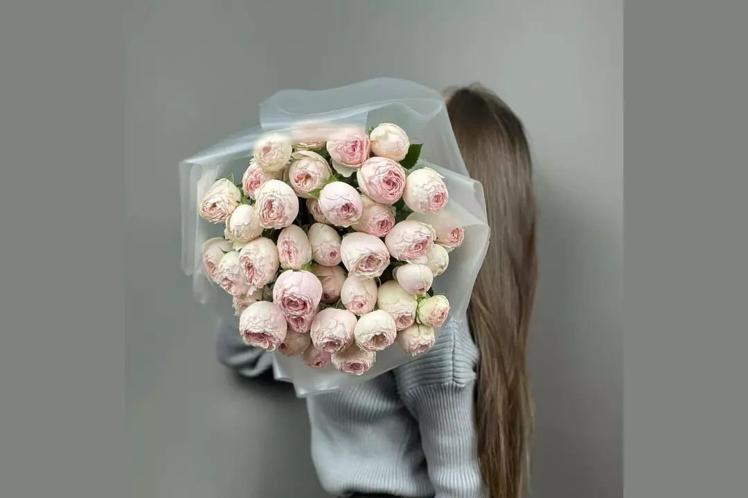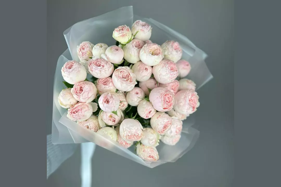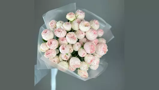 Лента атласная - 1 шт. Роза пионовидная кустовая - 11 шт. Пленка матовая - 5 шт.