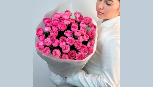 Монобукет из 15 пионовидных роз "Розовый шарм" FMART by flowwow
