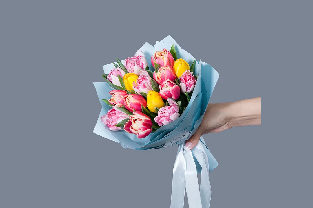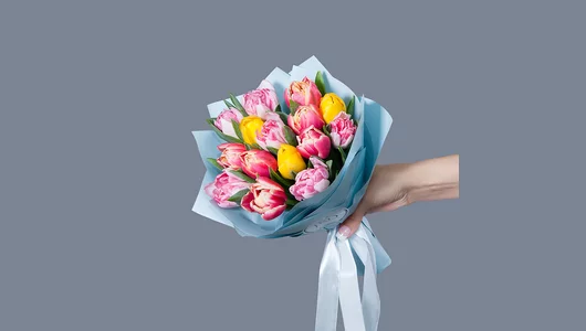 Монобукет из 15 тюльпанов микс в упаковке