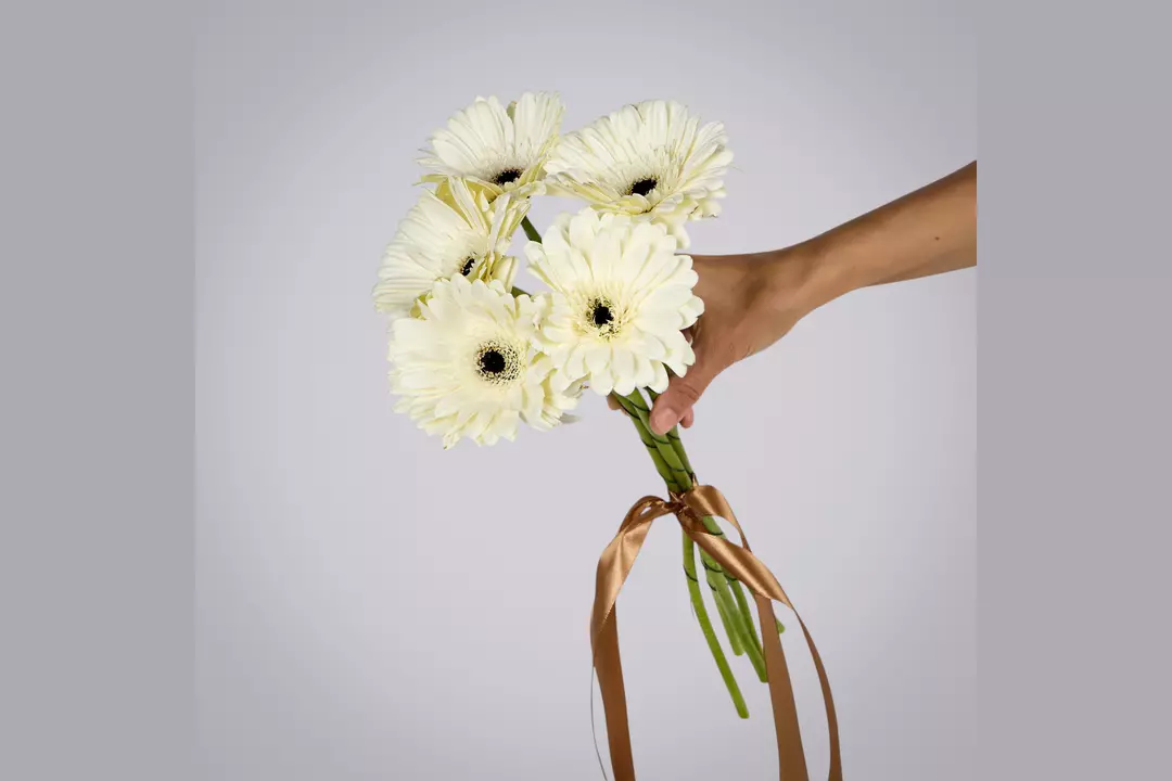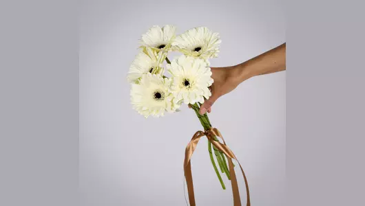 Монобукет из 5 белых гербер под ленту