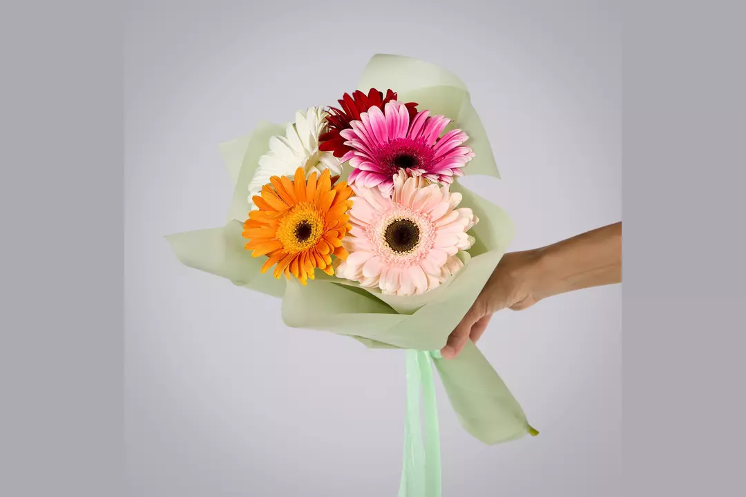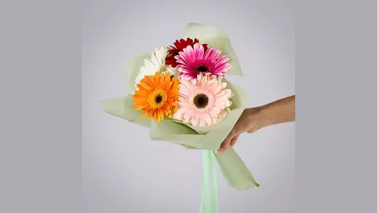 Монобукет из 5 гербер микс в упаковке