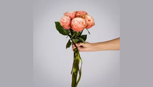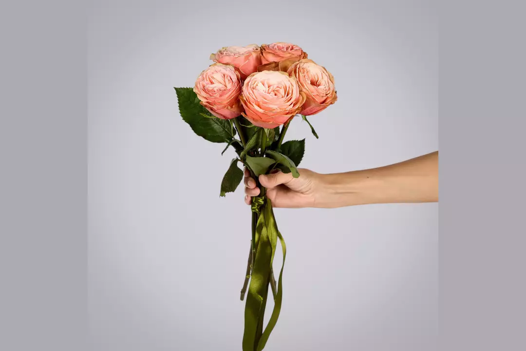 Монобукет из 5 пионовидных роз "Kahala" под ленту