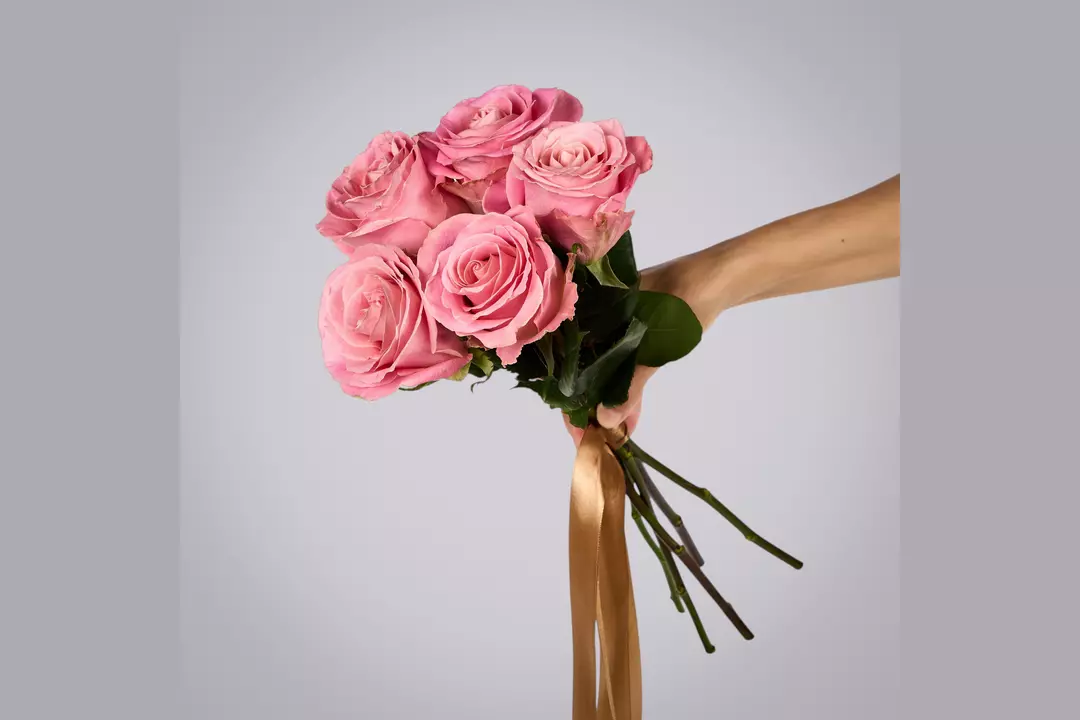 Монобукет из 5 роз "Hermosa" под ленту