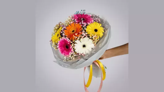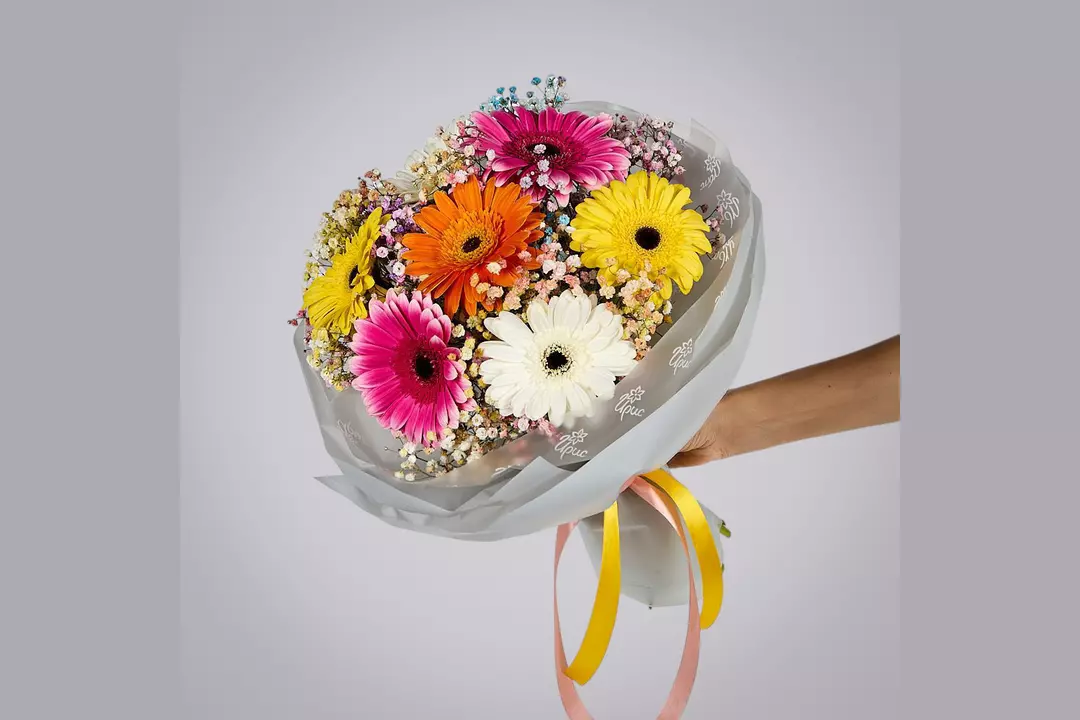 Монобукет из 7 гербер с гипсофилой создан для тех, кто ценит яркость, свежесть и жизнерадостность в каждом мгновении. Семь эффектных гербер разных оттенков формируют гармоничную композицию, мгновенно привлекающую внимание. Веточки гипсофилы окружают герберы лёгкой дымкой, мягко соединяя разные цвета в единое праздничное настроение. Нежная упаковка завершает образ, делая букет универсальным для любого повода. Этот букет отлично подойдёт тем, кому хочется подарить немного солнечного света и мотивации к новым свершениям. Герберы всегда символизировали открытость и дружбу, а гипсофила — легкость чувств и веру в лучшее. Универсальность такого букета позволяет дарить его на самые разные праздники — от выпускного до юбилея. Композиция долго сохраняет свежий вид и продолжает радовать своим ярким обликом каждый новый день.