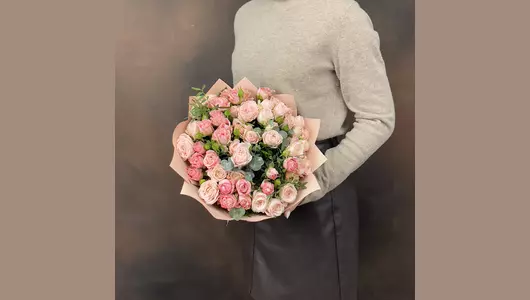 Монобукет из Кустовой пионовиднойрозы Бомбастик 15 шт FMART by flowwow