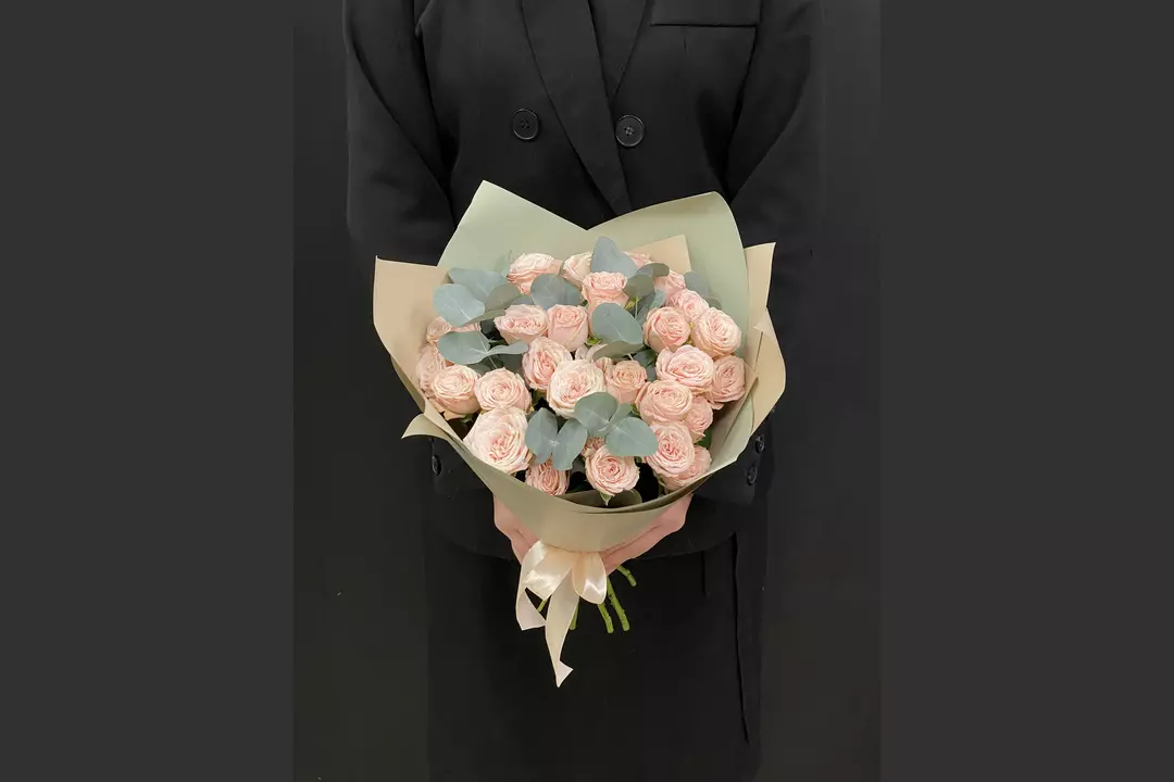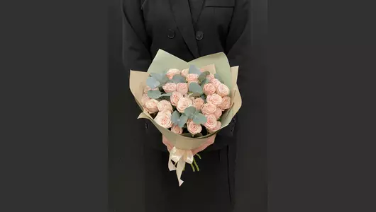 Монобукет из Кустовой пионовиднойрозы Бомбастик 9 шт FMART by flowwow
