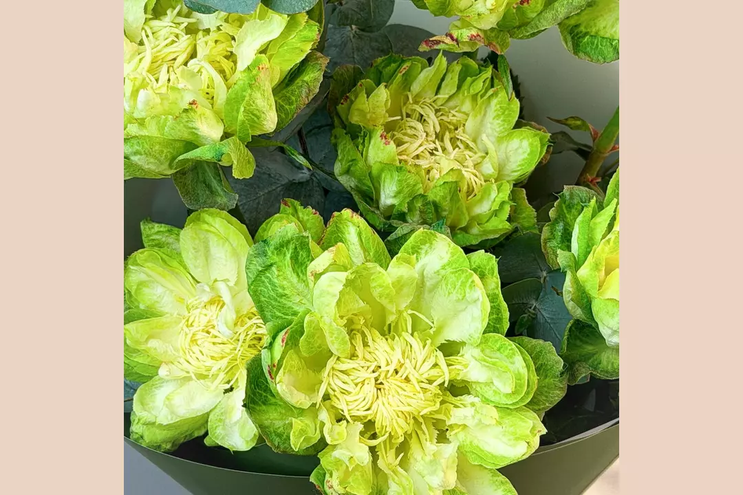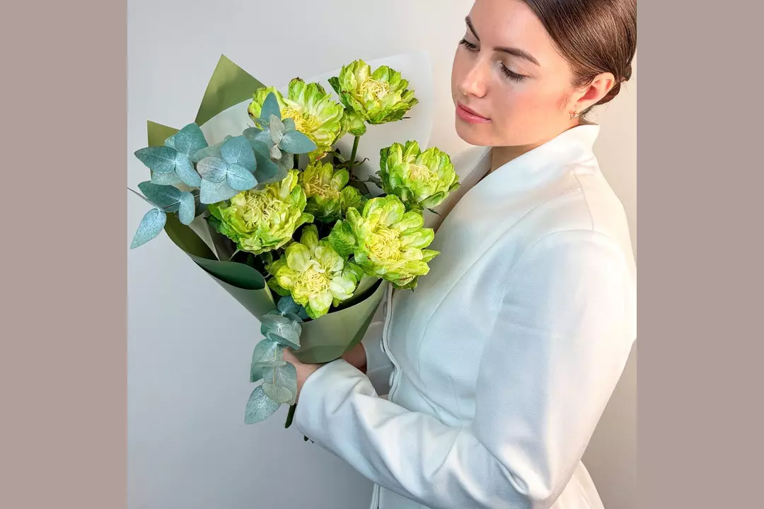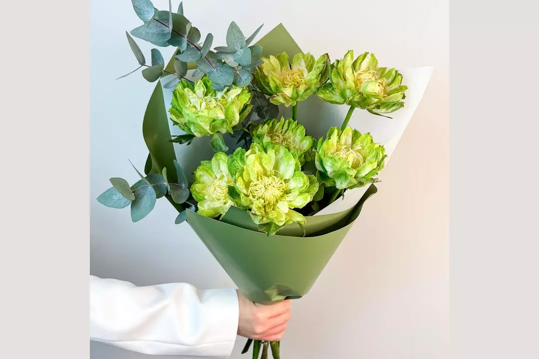 Монобукет из зелeных роз сорта Вегги "Эстетика природы FMART by flowwow