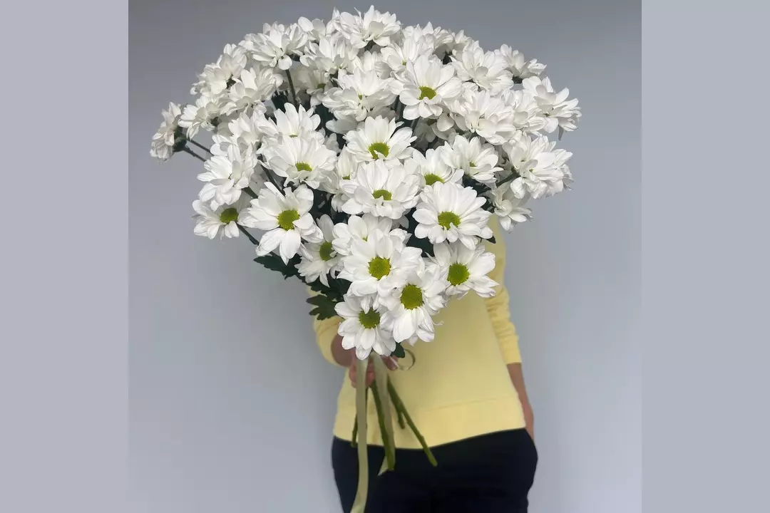 Букет из белых кустовых хризантем — это изысканное и нежное произведение флористического искусства. Белые хризантемы символизируют чистоту, невинность и гармонию, что делает их идеальными для различных торжеств и особых моментов.. Состав Хризантема кустовая белая - 9 шт. Лента атласная - 1 шт.