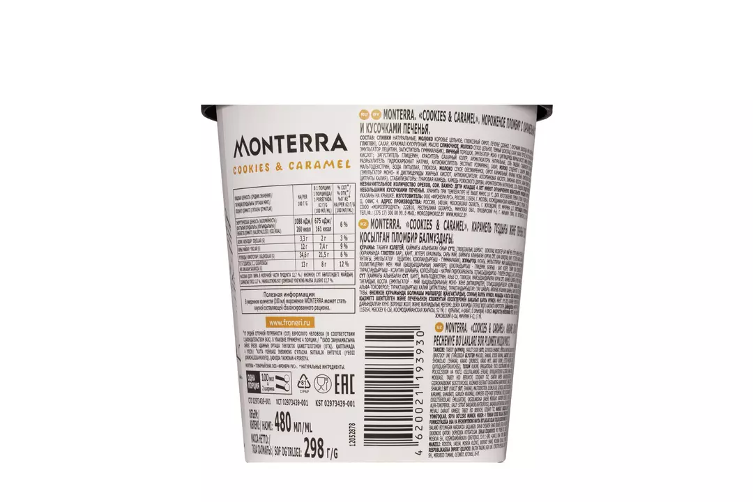 Мороженое Monterra Печенье с карамелью 480 мл / Супермаркет