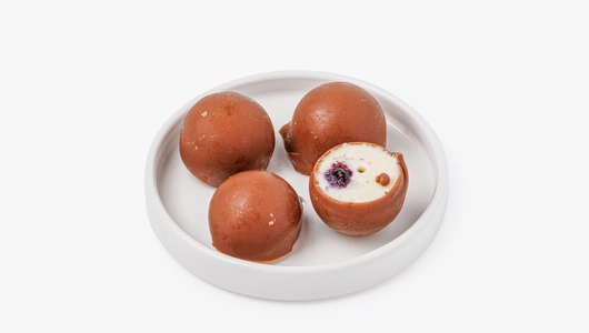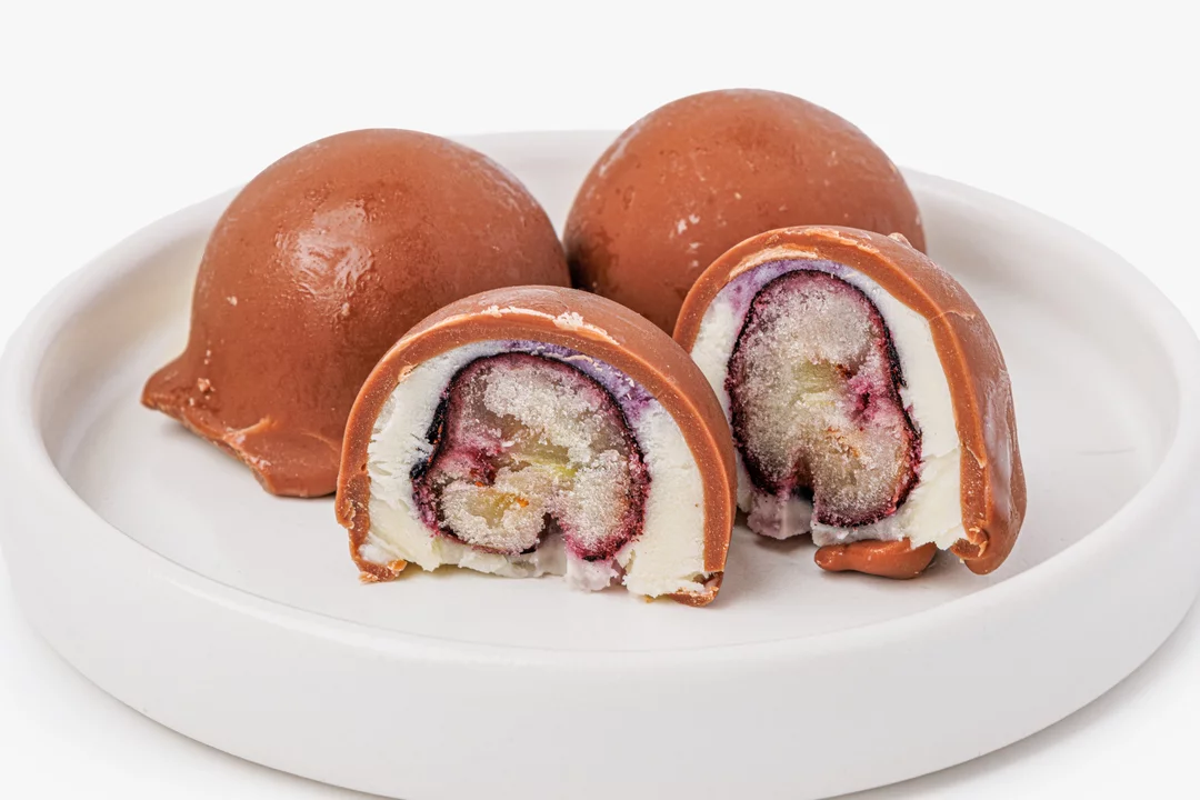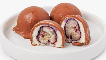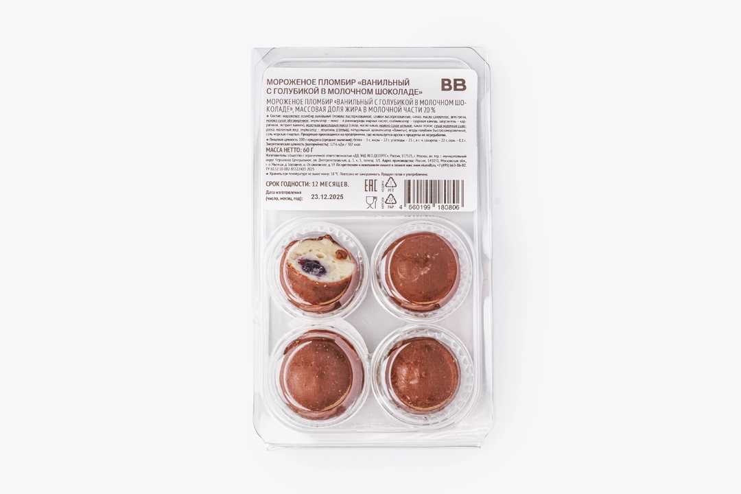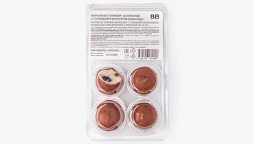 Нежное мороженое с яркими шоколадно-ягодными нотами и тёплым ванильным оттенком. Мы добавили в него быстрозамороженную голубику и покрыли слоем молочного шоколада. Лёгкая кислинка цельных ягод придаёт лакомству свежий акцент и гармонирует с деликатной молочной сладостью. Продукт понравится покупателям, которые ценят в десертах натуральный состав и любят сливочный вкус настоящего пломбира.
