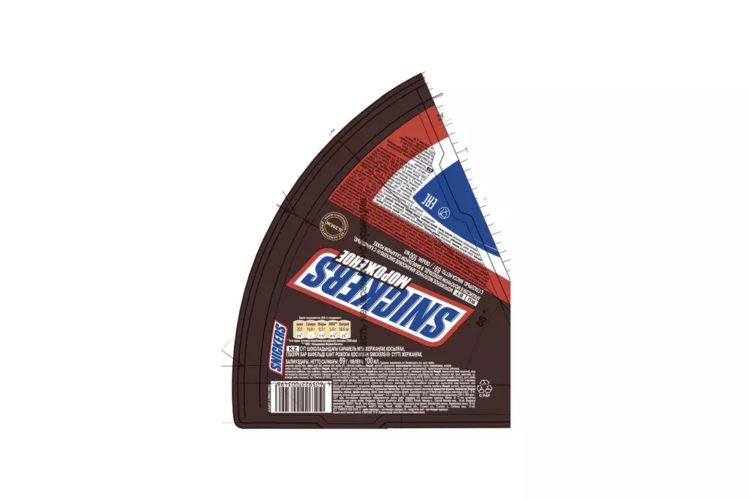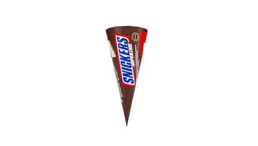Мороженое молочное арахисовое SNICKERS® с карамелью, арахисом в молочном шоколаде, в вафельном сахарном рожке с глазурью. Страна-производитель Россия