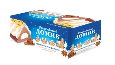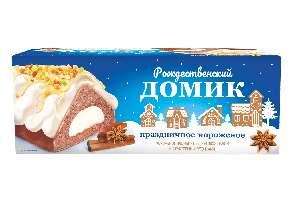 Мороженое Солнечный день пломбир Рождественский домик с шоколадом и фруктовыми кусочками 500 г