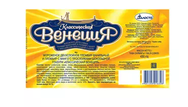 Мороженое Талосто Классическая Венеция пломбир ванильный и манго с шоколадной прослойкой 450 г / Супермаркет