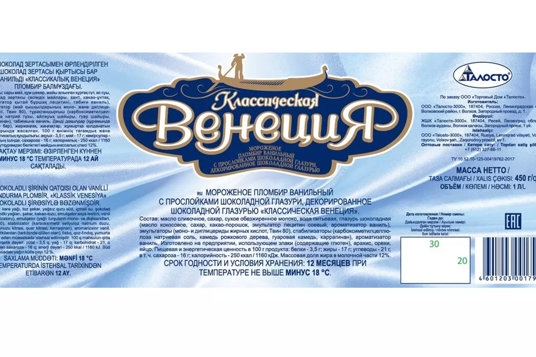 Мороженое Талосто Классическая Венеция пломбир ванильный с прослойками шоколадной глазури 450 г / Супермаркет