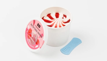 Нежное йогуртовое мороженое с яркой малиновой прослойкой выглядит очень аппетитно. Вкус сбалансированный: сливочная основа из цельного йогурта и сгущённого молока смягчает фруктовую кислинку, а малина добавляет свежесть и характер. Текстура гладкая и плотная, десерт приятно тает во рту, оставляя сливочно-ягодное послевкусие. Внутри — ложечка, удобно взять с собой или съесть на ходу. Хороший выбор для тех, кто любит мороженое с ягодным топпингом.