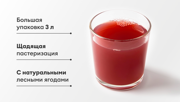Вся польза и вкус лесных ягод сохранены в натуральном морсе благодаря щадящей пастеризации. В его составе не содержится консервантов, искусственных красителей или ароматизаторов. В меру сладкий напиток разливают в большой формат упаковки