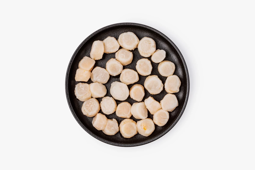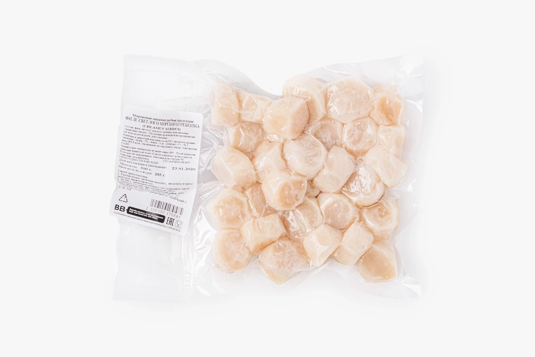 Мясо гребешка сладковатое, нежное и содержит минимум жиров. Замороженное филе покрыто тончайшим слоем ледовой глазури, на продукте её не больше 8%. К тому же мы не прибегаем к отбеливанию, поэтому у гребешка естественный, чуть желтоватый цвет.