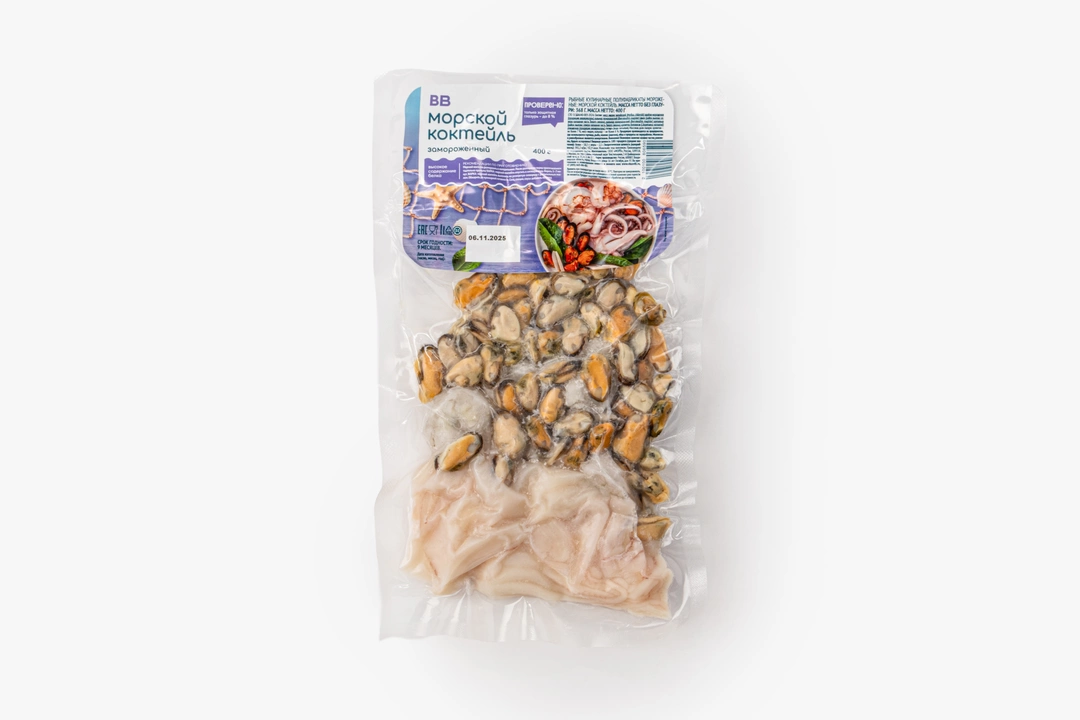 Эффектный коктейль с филе и щупальцами кальмара, мидиями и аргентинскими креветками. Морепродукты уже очищены и полностью подготовлены к варке или обжарке. Их можно подать как закуску с долькой лимона и зеленью, добавить в пиццу или пасту, использовать как основу для супов или салатов. Обратите внимание: в зависимости от производителя состав коктейля может немного разниться.