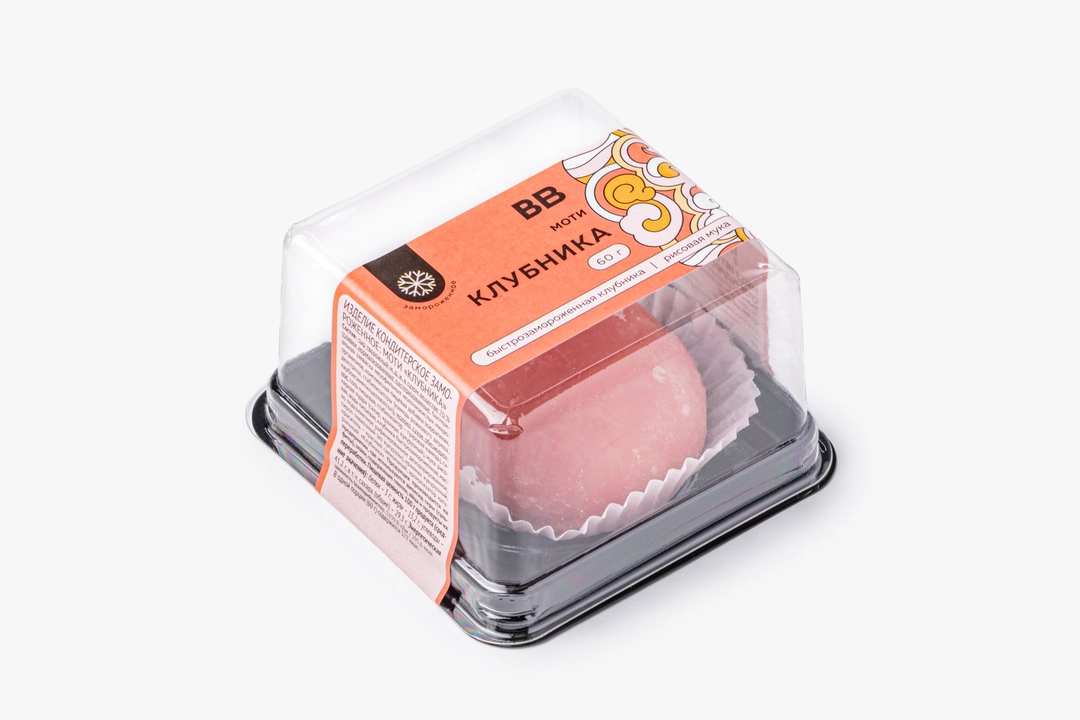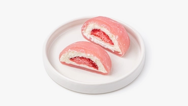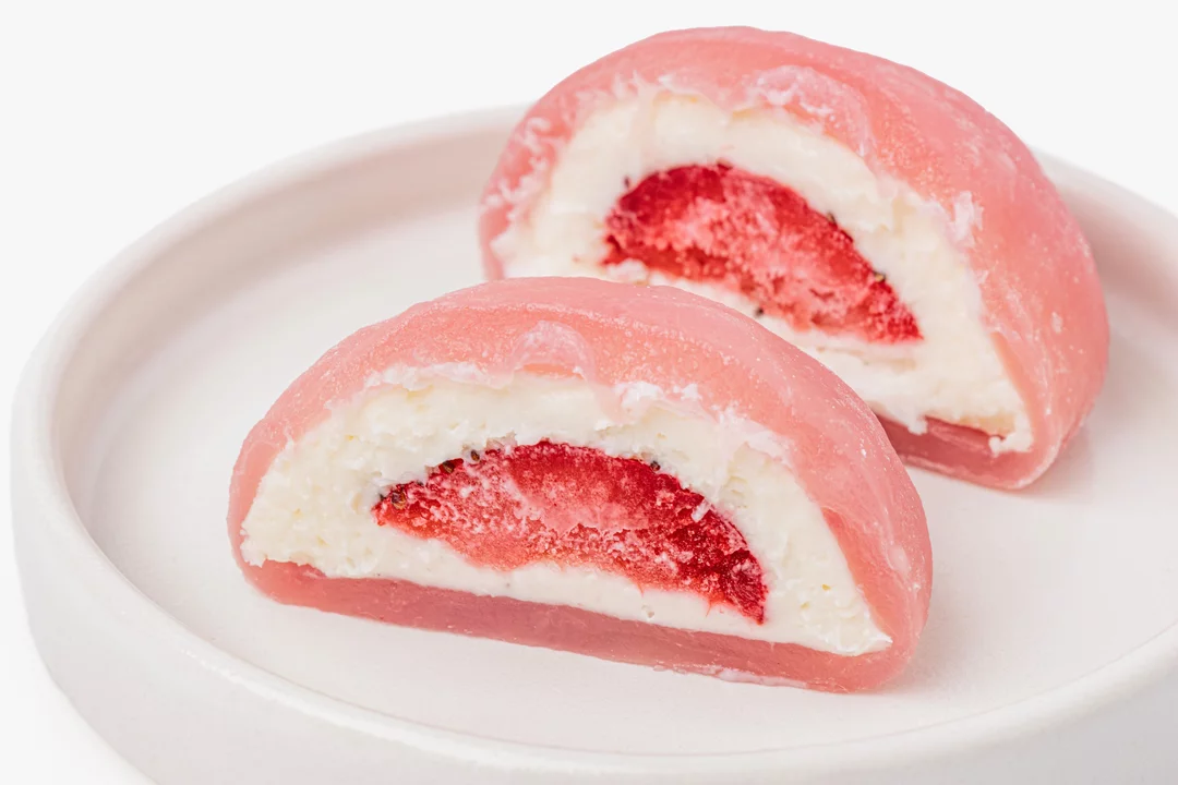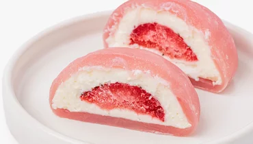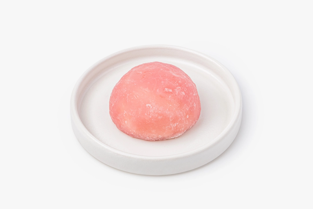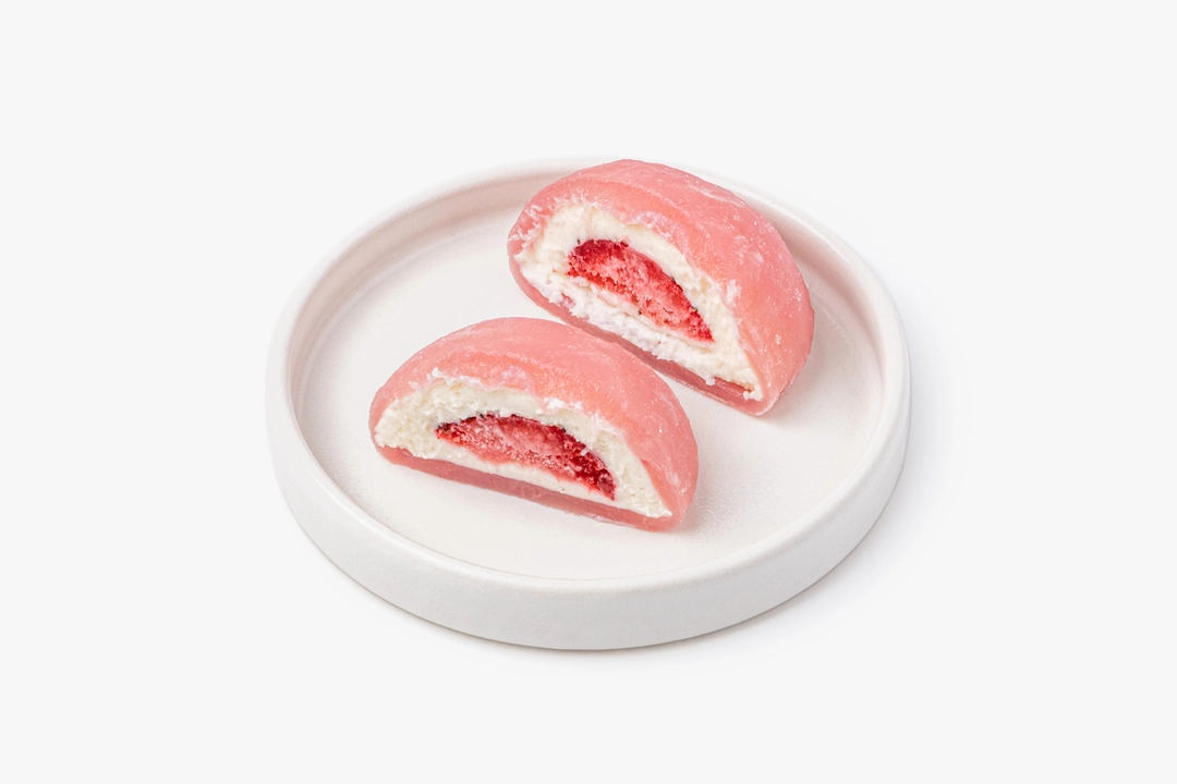 Традиционное японское пирожное с необычной тягучей текстурой. Десерт приготовлен из рисовой муки и творожного сыра с начинкой из клубники. Сверху посыпан сахарной пудрой. Лакомство заморожено и может долгое время храниться в морозильной камере, оставаясь таким же вкусным.
