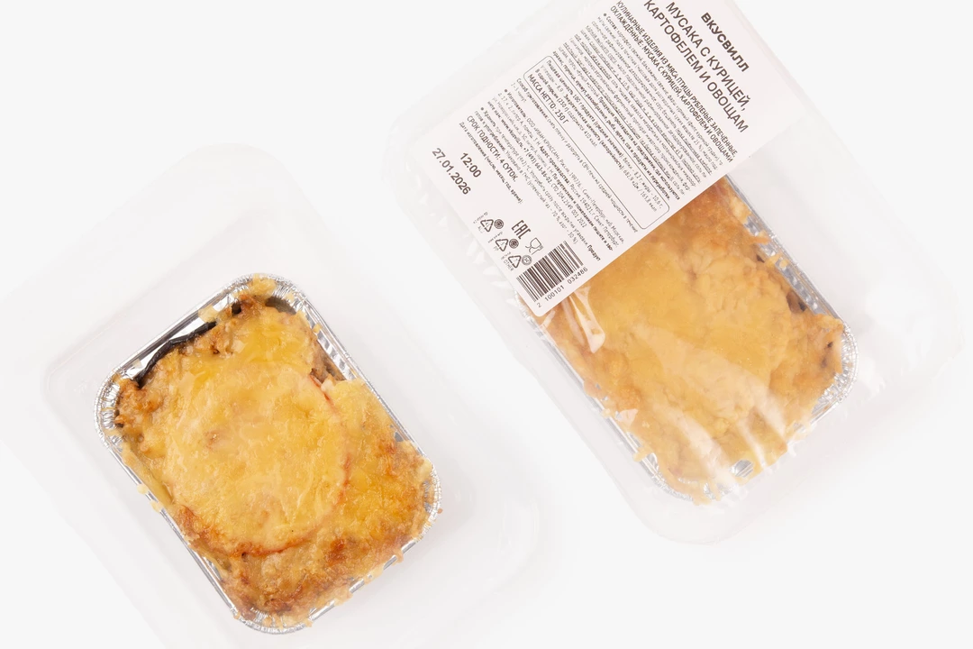 Сытная мусака с курицей и овощами — это вариация на тему популярного блюда балканской кухни и готовое решение для обеда или ужина. Мы запекали слои картофеля, баклажанов и куриного фарша с томатами. Соус бешамель с гаудой создаёт нежную сливочную прослойку и румяную корочку сверху. Блюдо нужно подогреть, чтобы ароматы специй и овощей полностью раскрылись. Оно напоминает о домашней кухне южных стран, где мясные запеканки особенно любимы.
