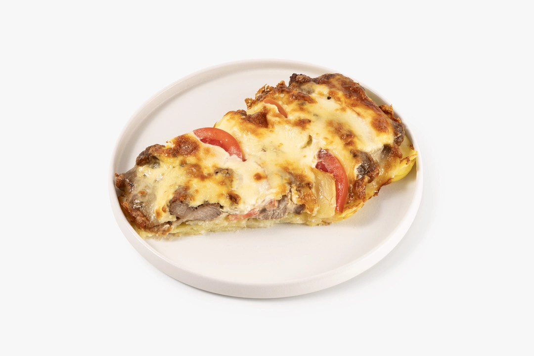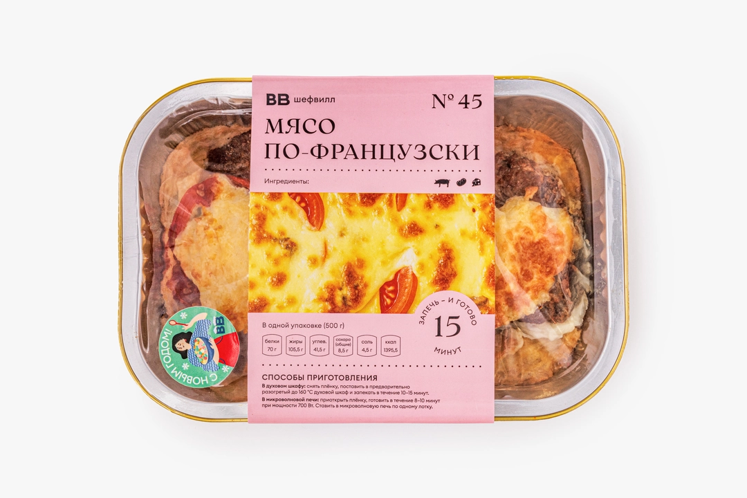 Сочное мясо по-французски — это любимая всеми кулинарная классика. Мы уже обжарили свинину с розмарином и чесноком, приготовили толчёный картофель с майонезом и пассерованным луком. Сырно-майонезная шапочка с моцареллой после запекания превращается в румяную золотистую корочку, а томаты добавляют деликатную кислинку, освежая вкус. Вам остаётся лишь собрать блюдо и запечь его в духовке или микроволновой печи. Подавайте мясо на стол с хрустящим багетом и лёгким салатом. С нашим набором вы без труда приготовите сытный и аппетитный ужин.
