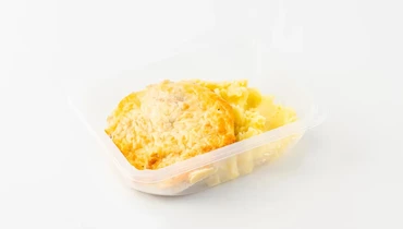 Нежное пюре на молоке и сливочном масле получается особенно мягким и тёплым, как в домашних обедах. В дополнение к нему мясо по-французски из рубленого филе куриной грудки с жареными шампиньонами и пассерованным луком. Внутри оно сочное и ароматное, а сверху — золотистая корочка из моцареллы и твёрдого сыра. Томаты добавляют вкусу яркость, а майонез делает заливку чуть более кремовой. Перец придаёт едва уловимую пикантность, не перебивая общее впечатление. Блюдо сытное, но не тяжёлое. Товар доступен для самовывоза из офлайн-точек Сгоряча и приедет к вам горячим и готовым к подаче. Его тоже можно выбрать Любимым продуктом и покупать с приятной скидкой.