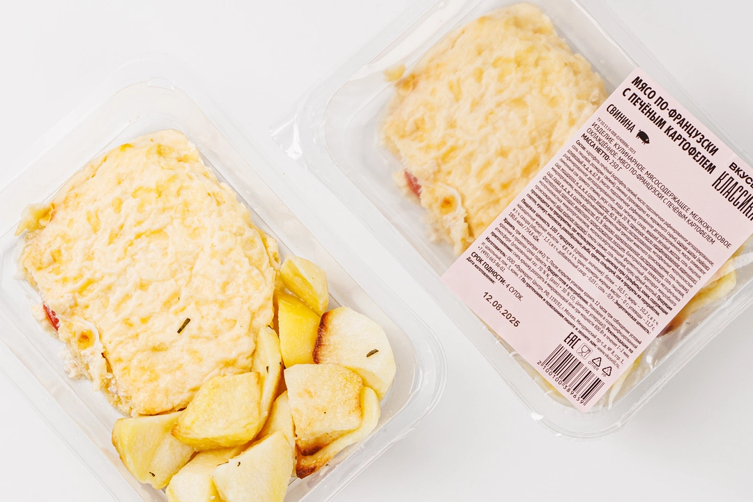 Мягкое и нежное мясо под сыром в сочетании с запечённым отборным картофелем. Состав проверен: нет усилителей вкуса, консервантов, антибиотиков и заменителей молочного жира