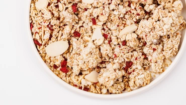 Мюсли с вишнёво-ореховым вкусом богаты питательными веществами и полезны для пищеварения. Цельнозерновые овсяные хлопья гармонично сочетаются с тонкими лепестками миндаля. Сублимированная вишня даёт натуральную кислинку. Корица добавляет тёплые ноты, напоминающие домашнюю выпечку. Хрустящая структура блюда сохраняется даже с молоком или йогуртом. Высокое содержание растительных волокон помогает дольше сохранять чувство сытости.