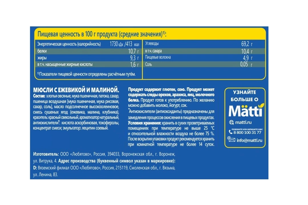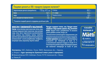 Мюсли Matti c ежевикой и малиной 250 г / Супермаркет