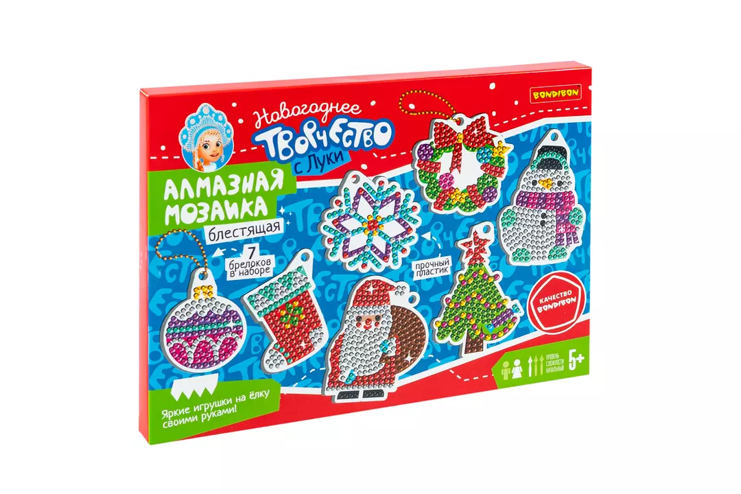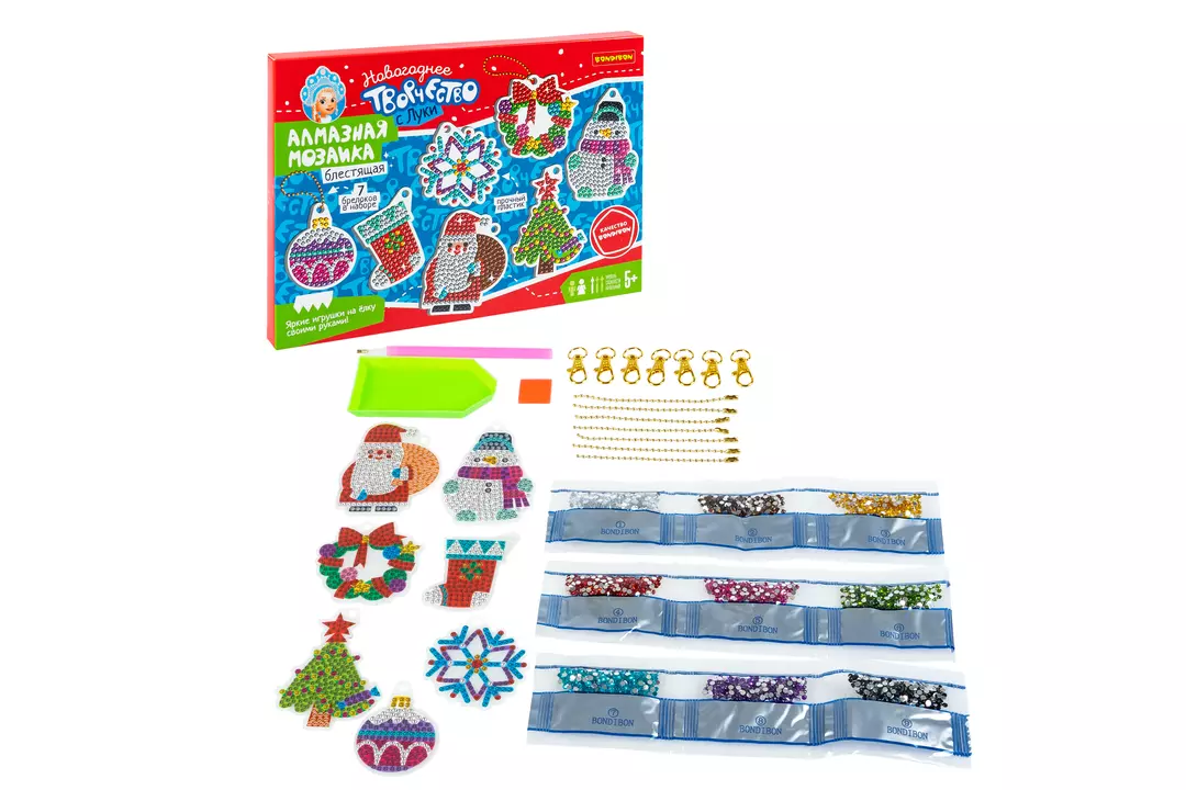 Набор для творчества Bondibon Алмазная мозаика 7 брелоков С новым годом! / Супермаркет