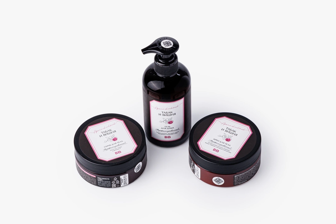 Набор для ухода за телом с ароматом табака и вишни — спокойная, тёплая композиция с лёгкой сладостью. В набор входят гель для душа, крем и сахарный скраб. Гель мягко очищает кожу, не сушит её и подходит для ежедневного использования: экстракты липы, алоэ и календулы смягчают и успокаивают. Скраб на основе сахара и масел бережно полирует кожу и делает её более гладкой. Крем с маслом ши, жожоба и виноградной косточки питает и поддерживает ощущение мягкости. Композиция работает как полноценный уход: очищение, обновление и увлажнение в одном наборе.