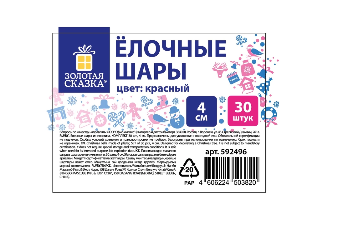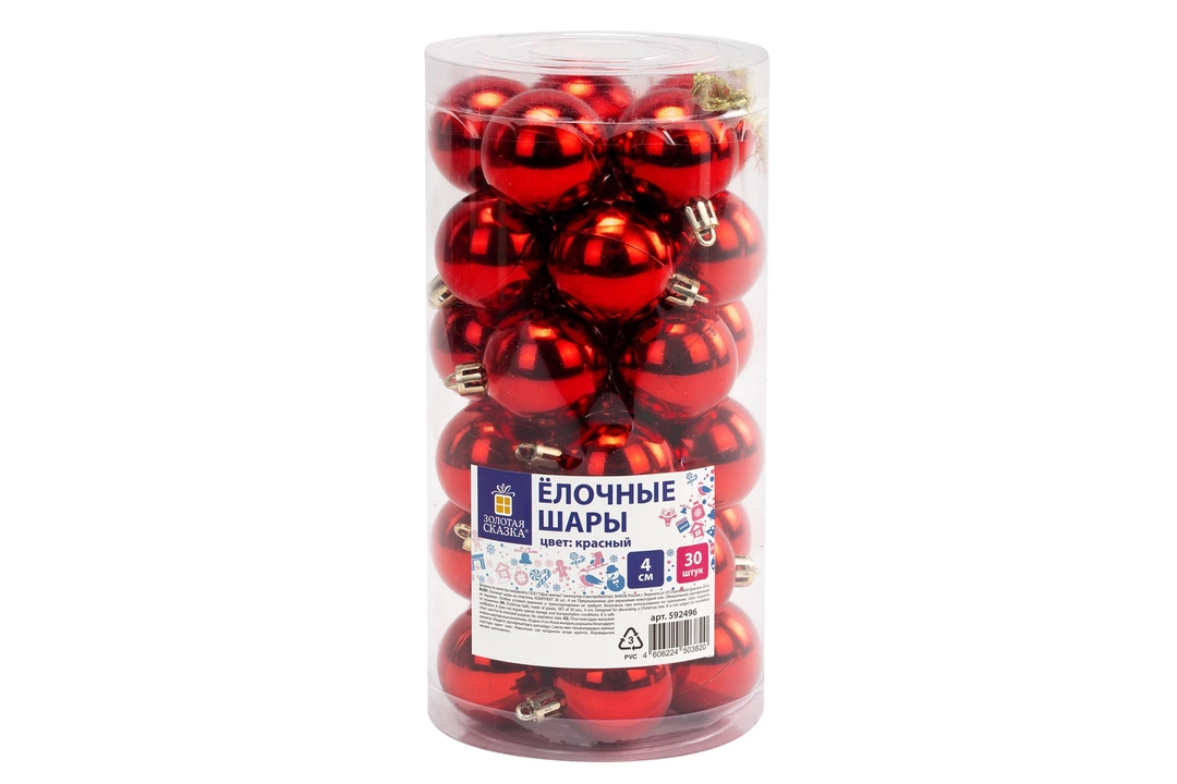 Набор елочных шаров Золотая сказка красные диаметр 4 см в тубе 30 шт / Супермаркет