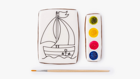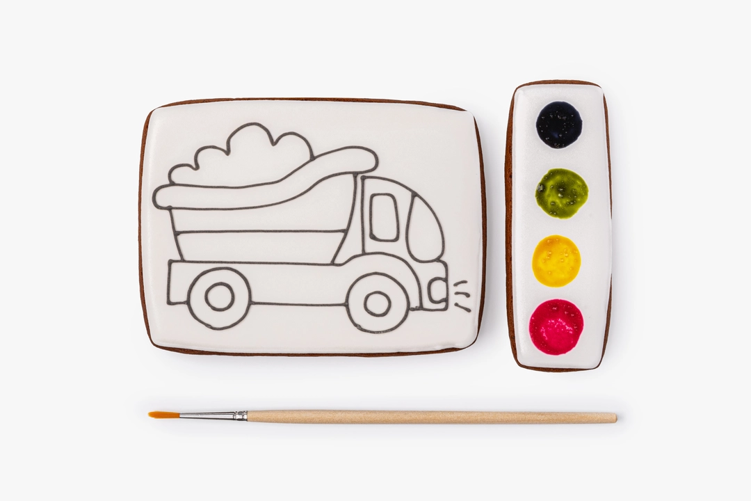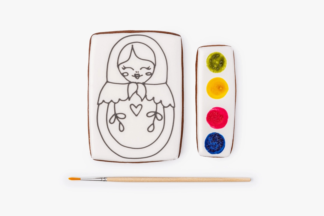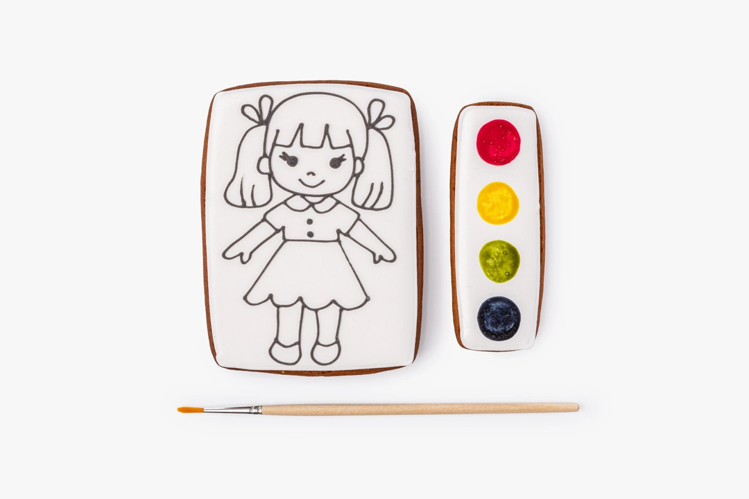 Ребёнок почувствует себя и художником, и кондитером, разукрашивая милый рисунок на пряничной глазури. Благодаря достаточно широким контурам и кисточке небольшого размера творить будет удобно даже детям младшего возраста. Сладкая палитра тоже в комплекте, осталось лишь её «оживить», капнув пару капель воды на нужный цвет. После того, как десерт будет раскрашен, его можно сохранить на память. А можно — съесть без малейших сомнений, ведь каждый использованный краситель пищевой и имеет растительное происхождение. Этот набор станет увлекательной альтернативой привычным раскраскам, а ещё — трогательным подарком. Обратите внимание, что краски после нанесения приобретают пастельные оттенки.