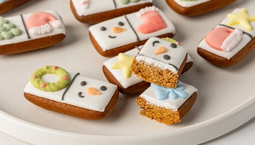 Пожалуй, игра в домино ещё никогда не была такой захватывающей, ведь сразу после партии можно устроить уютное чаепитие и съесть все плашки. Прянички обладают аппетитным пряным ароматом и насыщенным вкусом. Для росписи лакомства используем сахарную глазурь, подкрашенную натуральными красителями. Домино может стать оригинальным семейным развлечением на вечер, мини-подарком для сластён или приятным сувениром для похода в гости с детьми.