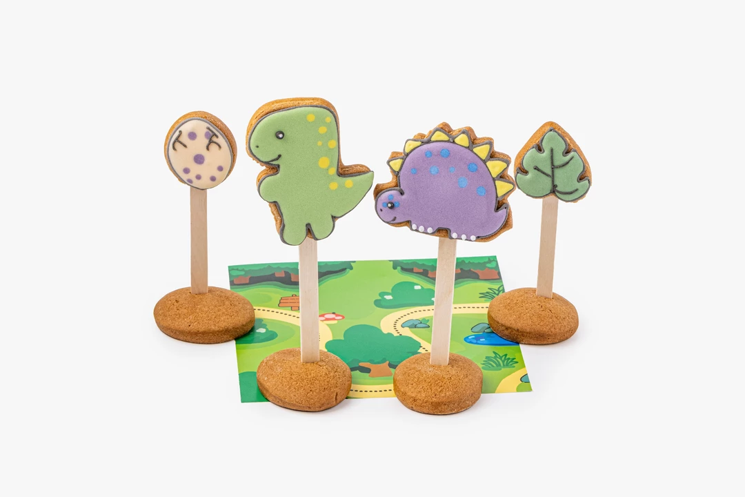 Фигурные пряники с традиционными зимними специями благодаря деревянным палочкам легко превращаются в героев сказок. Глазурь с натуральными красителями придаёт персонажам яркие оттенки и мягкую сладость. Чтобы поддержать тему праздника, вы можете выбрать один из двух сюжетов: с динозавриками или с принцессой. Необычный театр особенно порадует детей, которые любят совмещать игру с угощением. После представления десерт можно съесть.