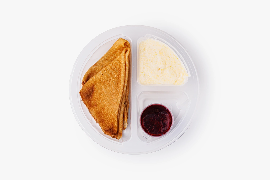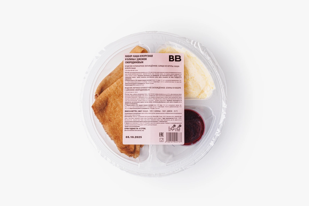 Набор: каша кукурузная и блины с джемом смородиновым