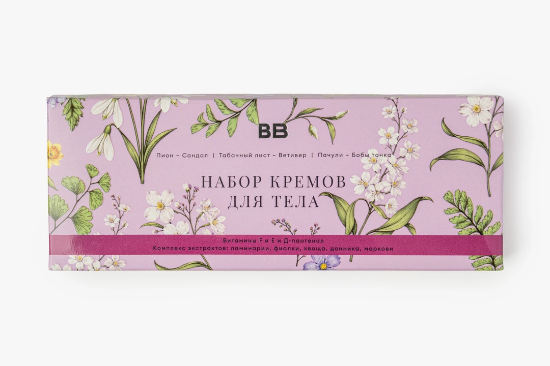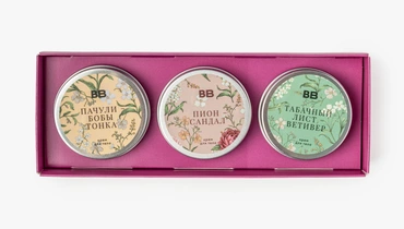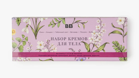 Набор из 3 кремов для тела с разными парфюмерными акцентами: пион и сандал, табачный лист и ветивер, пачули и бобы тонка. Кремы с комфортной текстурой хорошо распределяются по коже, быстро смягчают её и помогают сохранить ощущение увлажнённости. В составе — масла и комплекс растительных экстрактов ламинарии, фиалки, хвоща, донника и моркови, а также витамины F и E и D-пантенол. Ароматы раскрываются по-разному — от цветочно-древесных до тёплых землистых нот, поэтому кремы удобно использовать по настроению. Набор подходит для ежедневного ухода за кожей тела. Объём каждой из 3 баночек 50 мл.