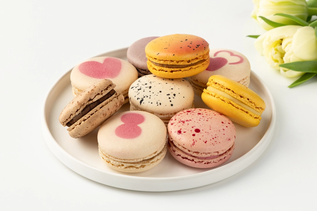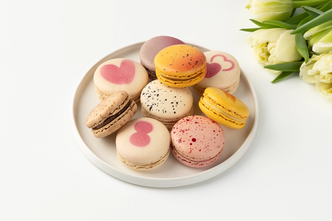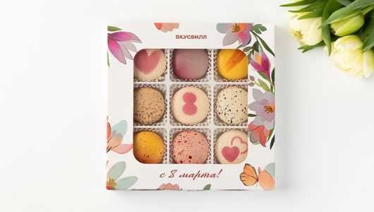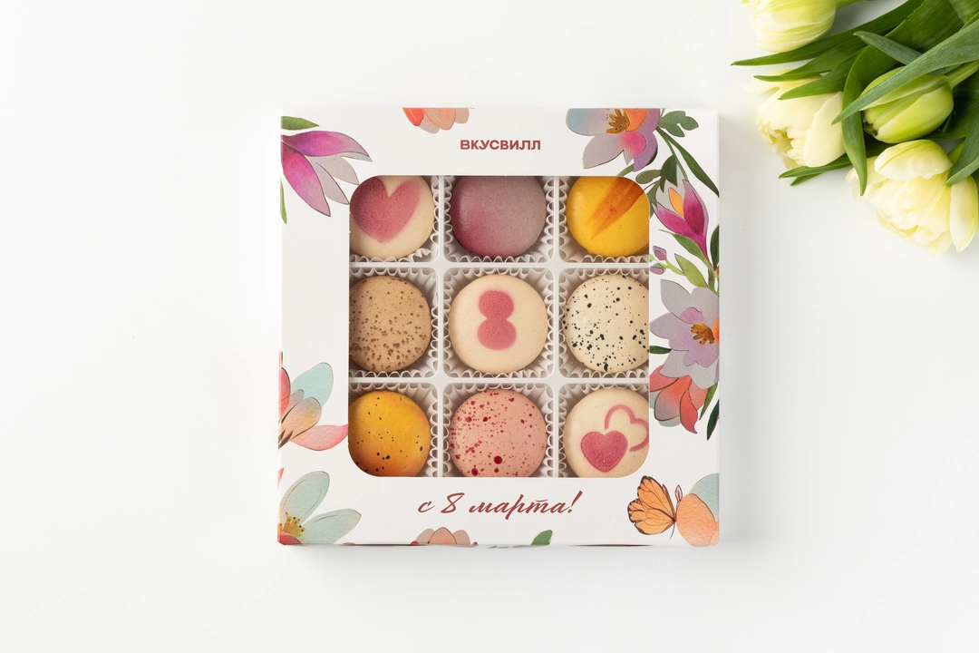 пирожное «Макарон» Кленовый Пекан (сахар, мука миндальная (ядра ореха миндаля молотые), белок яичный жидкий пастеризованный, шоколад белый (сахар, какао-масло, молоко сухое цельное, эмульгатор - лецитины (соевый), ароматизатор натуральный - ваниль), вода питьевая, молоко питьевое ультрапастеризованное м.д.ж.3,2%, паста из ядер грецких орехов обжаренных (ядра грецкого ореха обжаренные), кленовый сироп, сливки питьевые ультрапастеризованные м.д.ж.34%, паста из ядер ореха пекан (ядра ореха пекан обжаренные), глюкозный сироп (из кукурузы), декстроза, белок яичный сухой, влагоудерживающий агент-сорбит, соль пищевая, эмульгатор - лецитины (соевый), ароматизатор натуральный "Пекан", краситель - красный свекольный); пирожное «Макарон» Солёная Карамель (сахар, мука миндальная (ядра ореха миндаля молотые), белок яичный жидкий пастеризованный, шоколад белый (сахар, какао-масло, молоко сухое цельное, эмульгатор - лецитины (соевый), ароматизатор натуральный - ваниль), вода питьевая, сливки питьевые ультрапастеризованные м.д.ж.34%, шоколад молочный (сахар, масло какао, молоко сухое цельное, какао тертое, эмульгатор-лецитины (соевый), натуральный ароматизатор- ваниль), масло сладко-сливочное несоленое м.д.ж.82,5%, молоко питьевое ультрапастеризованное м.д.ж.3,2%, карамельный сироп (вода питьевая, сахар), влагоудерживающий агент - сорбит, глюкозный сироп (из кукурузы), декстроза, белок яичный сухой, соль пищевая, краситель - красный свекольный); пирожное «Макарон» Фисташка (сахар, мука миндальная (ядра ореха миндаля молотые), белок яичный жидкий пастеризованный, белая шоколадная масса (сахар, масло какао, молоко сухое цельное, молоко сухое обезжиренное, молочный жир, эмульгатор - лецитины (соевый), натуральный ароматизатор - ваниль) , вода питьевая, молоко питьевое ультрапастеризованное м.д.ж.3,2%, паста фисташковая (ядра орехов фисташки обжаренные), сливки питьевые ультрапастеризованные м.д.ж.34%, влагоудерживающий агент - сорбит, глюкозный сироп (из кукурузы), декстроза, белок яичный сухой, краситель - красный свекольный); пирожное «Макарон» Ваниль (сахар, мука миндальная (ядра ореха миндаля молотые), белок яичный жидкий пастеризованный, сливки питьевые ультрапастеризованные м.д.ж.34%, шоколад белый (сахар, какао-масло, молоко сухое цельное, эмульгатор-лецитины (соевый), ароматизатор натуральный - ваниль), вода питьевая, влагоудерживающий агент - сорбит, глюкозный сироп (из кукурузы), декстроза, экстракт ванили Бурбон с семенами (инвертный сахар, ванильный концентрат, семена ванили), белок яичный сухой, краситель - уголь растительный); пирожное «Макарон» Манго/Маракуйя (сахар, мука миндальная (ядра ореха миндаля молотые), белок яичный жидкий пастеризованный, шоколад белый (сахар, какао-масло, молоко сухое цельное, эмульгатор -лецитины (соевый), натуральный ароматизатор- ваниль), вода питьевая, сливки питьевые ультрапастеризованные м.д.ж.34%, пюре фруктовое замороженное "Маракуйя" (маракуйя), пюре фруктовое замороженное "Манго" (манго), молоко питьевое ультрапастеризованное м.д.ж.3,2%, влагоудерживающий агент-сорбит, глюкозный сироп (из кукурузы), декстроза, белок яичный сухой, красители (каротины (бета-каротин), красный свекольный), эмульгатор -лецитины (соевый)); пирожное «Макарон» Штрудель (сахар, мука миндальная (ядра ореха миндаля молотые), белок яичный жидкий пастеризованный, шок