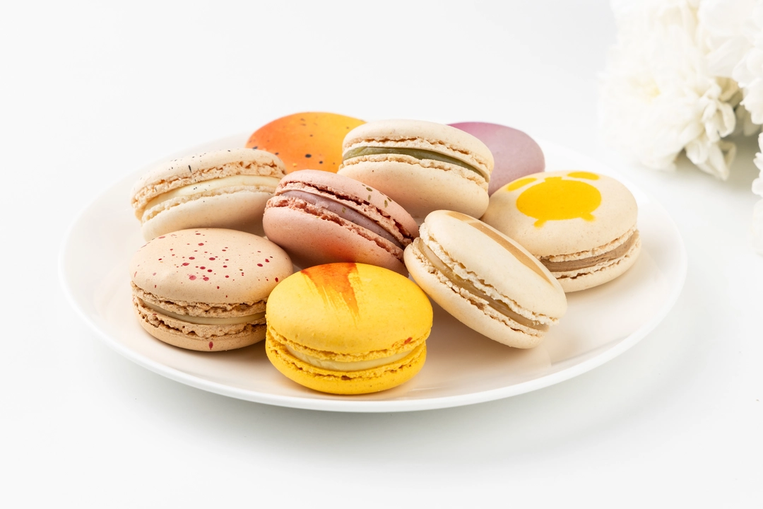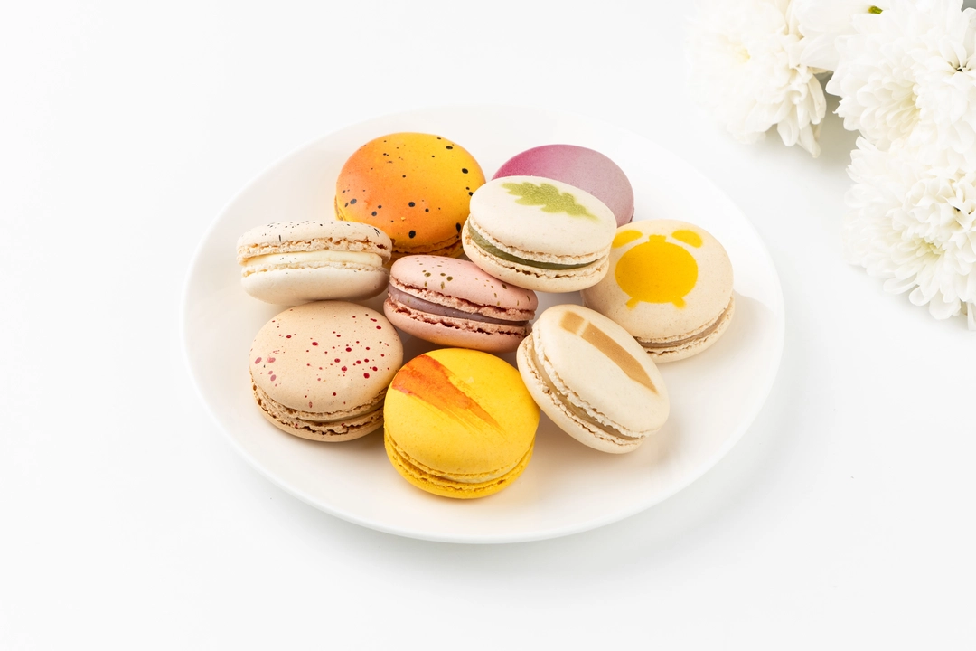 Пирожное «Макарон» Манго/Маракуйя (сахар, мука миндальная (ядра ореха миндаля молотые), белок яичный жидкий пастеризованный, белый шоколад (сахар, какао-масло, сухое цельное молоко, эмульгатор -лецитины (соевый) , натуральный ароматизатор- ваниль), вода питьевая, сливки питьевые ультрапастеризованные м.д.ж.34%, пюре фруктовое замороженное "Маракуйя" (маракуйя), пюре фруктовое замороженное "Манго" (манго), молоко питьевое ультрапастеризованное м.д.ж.3,2%, влагоудерживающий агент- сорбит, глюкозный сироп (из кукурузы), декстроза, белок яичный сухой, краситель-каротины (бета-каротин), эмульгатор -лецитины (соевый)). Пирожное «Макарон» Фисташка (сахар, мука миндальная (ядра ореха миндаля молотые), белок яичный жидкий пастеризованный, белая шоколадная масса (сахар, масло какао, сухое цельное молоко, сухое обезжиренное молоко, молочный жир, эмульгатор- лецитины (соевый), натуральный ароматизатор «Ваниль»), вода питьевая, молоко питьевое ультрапастеризованное м.д.ж.3,2%, паста фисташковая (ядра орехов фисташки обжаренные), сливки питьевые ультрапастеризованные м.д.ж.34%, влагоудерживающий агент- сорбит, глюкозный сироп (из кукурузы), декстроза, белок яичный сухой, декстроза, экстракт растительный (экстракт сафлора, экстракт генипы)). Пирожное «Макарон» Черничный йогурт (сахар, мука миндальная (ядра ореха миндаля молотые), белок яичный жидкий пастеризованный, белая шоколадная масса (сахар, какао-масло, сухое цельное молоко, сухое обезжиренное молоко, молочный жир, эмульгатор- лецитины (соевый), натуральный ароматизатор «Ваниль»), сыр творожный м.д.ж. в сухом веществе 65% (творог (нормализованное пастеризованное молоко, бактериальная закваска, молокосвертывающий фермент микробного происхождения), загуститель-дикрахмаладипат ацетилированный, соль пищевая, стабилизаторы (камедь рожкового дерева, гуаровая камедь), регулятор кислотности-лимонная кислота, вода питьевая), масло сладко-сливочное несоленое м.д.ж. 82,5%, йогурт сухой обезжиренный (молоко восстановленное из сухого обезжиренного молока, заквасочная культура на основе Streptococcus salivarius ssp. thermophilus, Lactobacillus delbrueckii ssp. bulgaricus), вода питьевая, пюре фруктовое замороженное "Черника" (черника, сахар), пюре фруктовое замороженное "Лимон" (лимон), глюкозный сироп (из кукурузы), эмульгатор-лецитины (соевый), декстроза, белок яичный сухой, влагоудерживающий агент-сорбит, регулятор кислотности - лимонная кислота, ароматизаторы натуральные (малина, йогурт, грейпфрут), краситель -красный свекольный). Пирожное «Макарон» Клубника/Мята (сахар, мука миндальная (ядра ореха миндаля молотые)), белый шоколад (сахар, какао-масло, сухое цельное молоко, эмульгатор: лецитины (соевый), ароматизатор натуральный (ваниль)), пастеризованный яичный белок, пюре фруктовое замороженное "Клубника" (клубника, сахар), вода питьевая, глюкозный сироп (из кукурузы), масло сладко-сливочное несоленое м.д.ж.82,5%, какао-масло, белок яичный сухой, мята сушеная (листья), регулятор кислотности- лимонная кислота, краситель-красный свекольный, экстракт сафлора, экстракт генипы, ароматизатор - клубника). Пирожное «Макарон» Кленовый Пекан (сахар, мука миндальная (ядра ореха миндаля молотые), белок яичный жидкий, белый шоколад (сахар, какао-масло, сухое цельное молоко, эмульгатор- лецитины (соевый), натуральный ароматизатор ваниль), вода питьевая, молоко питьевое ультр