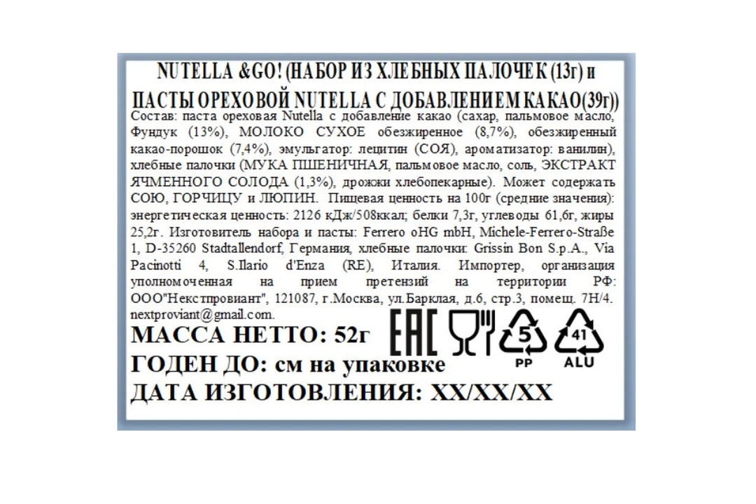 Хотите вкусный и удобный перекус? Тогда Nutella & GO! — это то, что Вам необходмио! Окуните хлебные палочки в восхитительную Nutella® и наслаждайтесь ореховой пастой где и когда угодно. Удобнее не бывает. Страна-производитель Германия