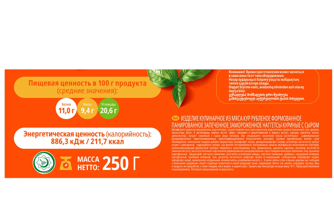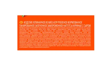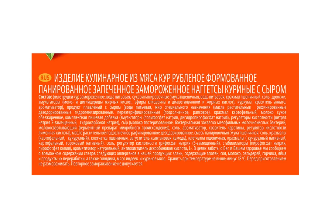 Нежнейший сыр придает наггетсам соблазнительный аромат и насыщенный, пикантный вкус, а золотистая панировка сохраняет сочность отборного куриного филе. Приятного аппетита! Страна-производитель Россия