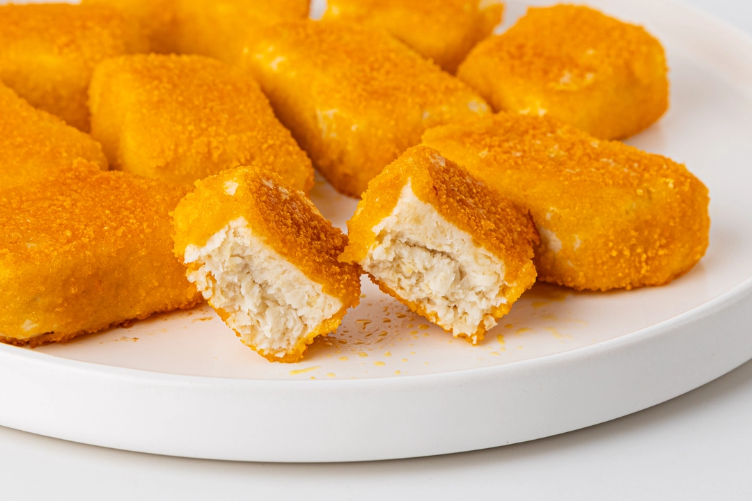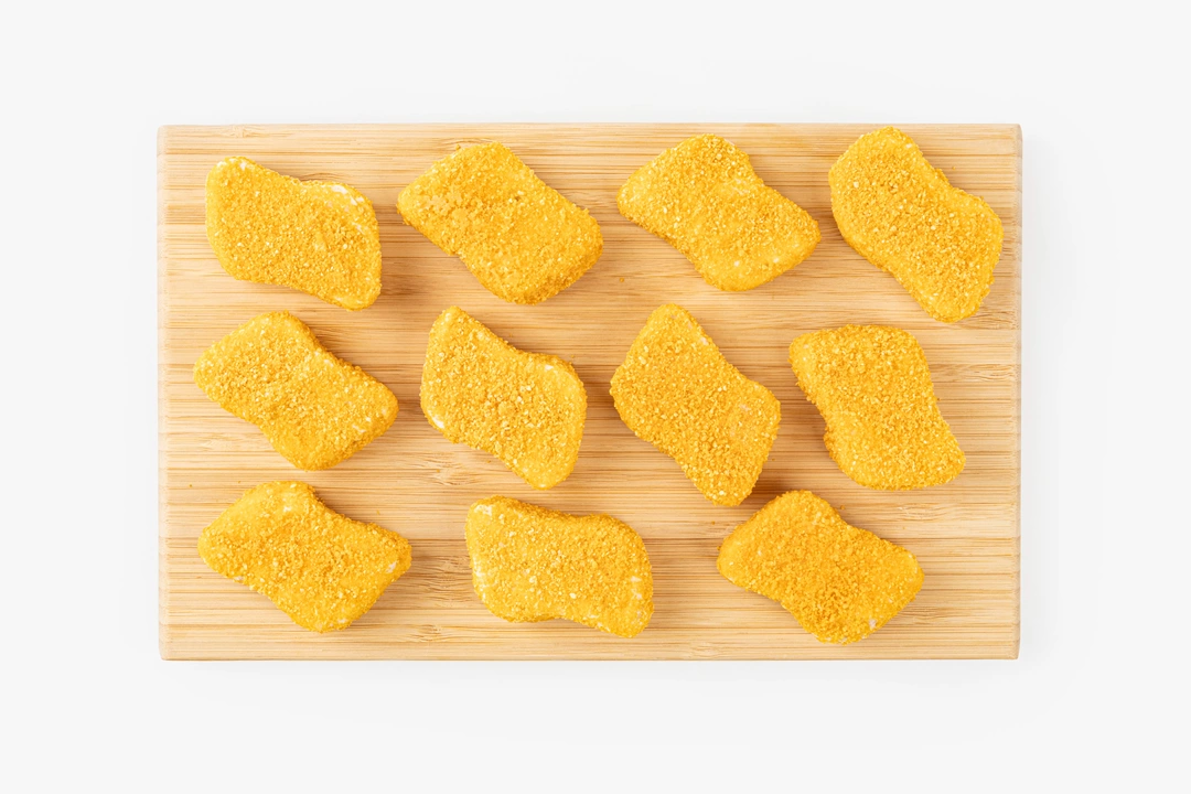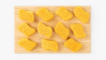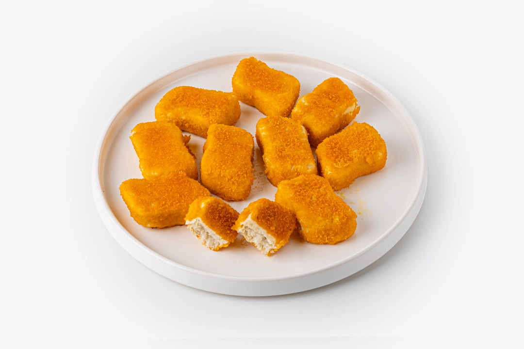 Хрустящие снаружи и нежные внутри — эти наггетсы подойдут и для быстрого перекуса, и в качестве основного блюда в сочетании с гарниром. Благодаря панировке из пшеничных сухарей и экстракта паприки при обжарке появляется аппетитная золотистая корочка. В составе только растительные ингредиенты: соевый белок, растительные масла (подсолнечное и льняное) и немного специй, которые создают мягкий, сбалансированный вкус. А усилителей вкуса и искусственных ароматизаторов мы не добавляем.