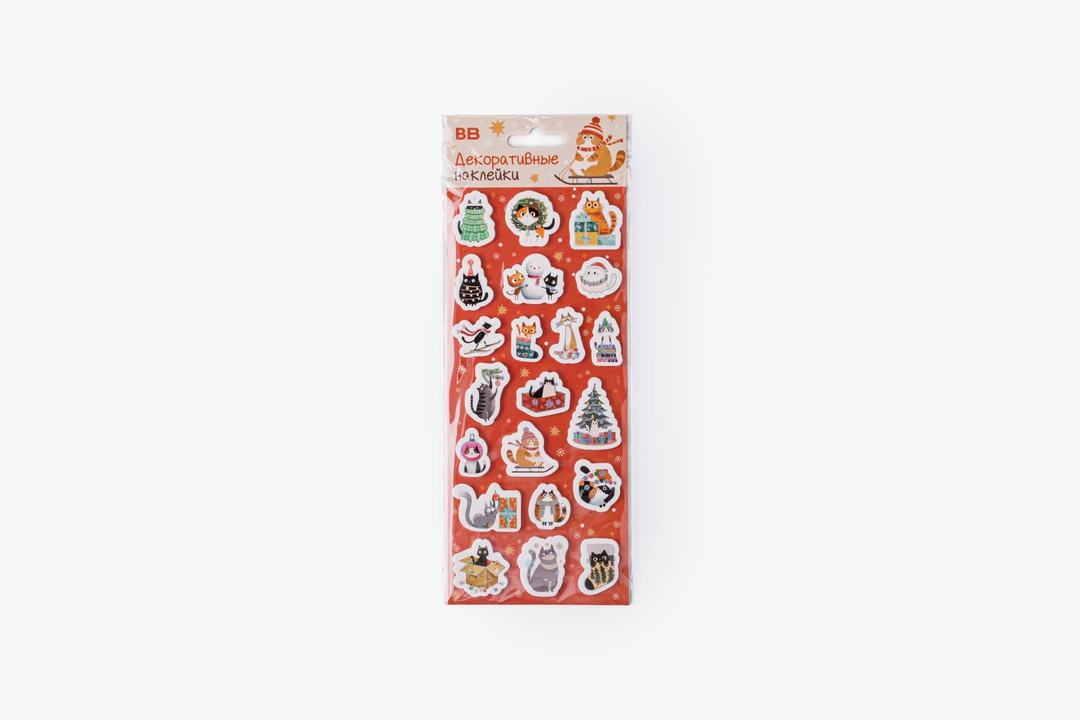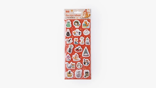Объёмные разноцветные наклейки с новогодней тематикой. Дети любят украшать ими тетради, открытки и различные предметы в комнате. Яркие цвета и милые изображения понравятся и самым маленьким дизайнерам, и ребятам постарше. Стикеры легко отделяются от картонной основы и надёжно крепятся благодаря клеевому слою. Наклейки можно использовать несколько раз, если аккуратно снимать их с гладких поверхностей.