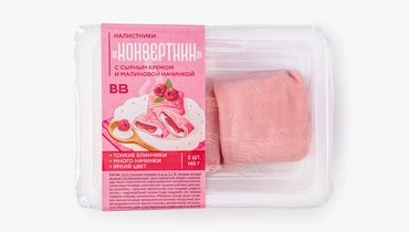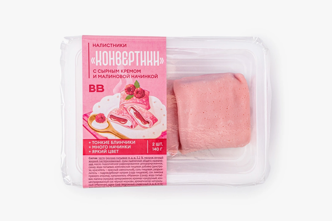 Тончайшие десертные блинчики с воздушным сырным кремом и сочным малиновым наполнителем. Нежные и довольно сладкие, они станут прекрасным десертом к чашке чая. А их эстетичный розовый оттенок, полученный благодаря натуральному свекольному красителю, сделает чаепитие ещё приятнее. В упаковке 2 налистника.